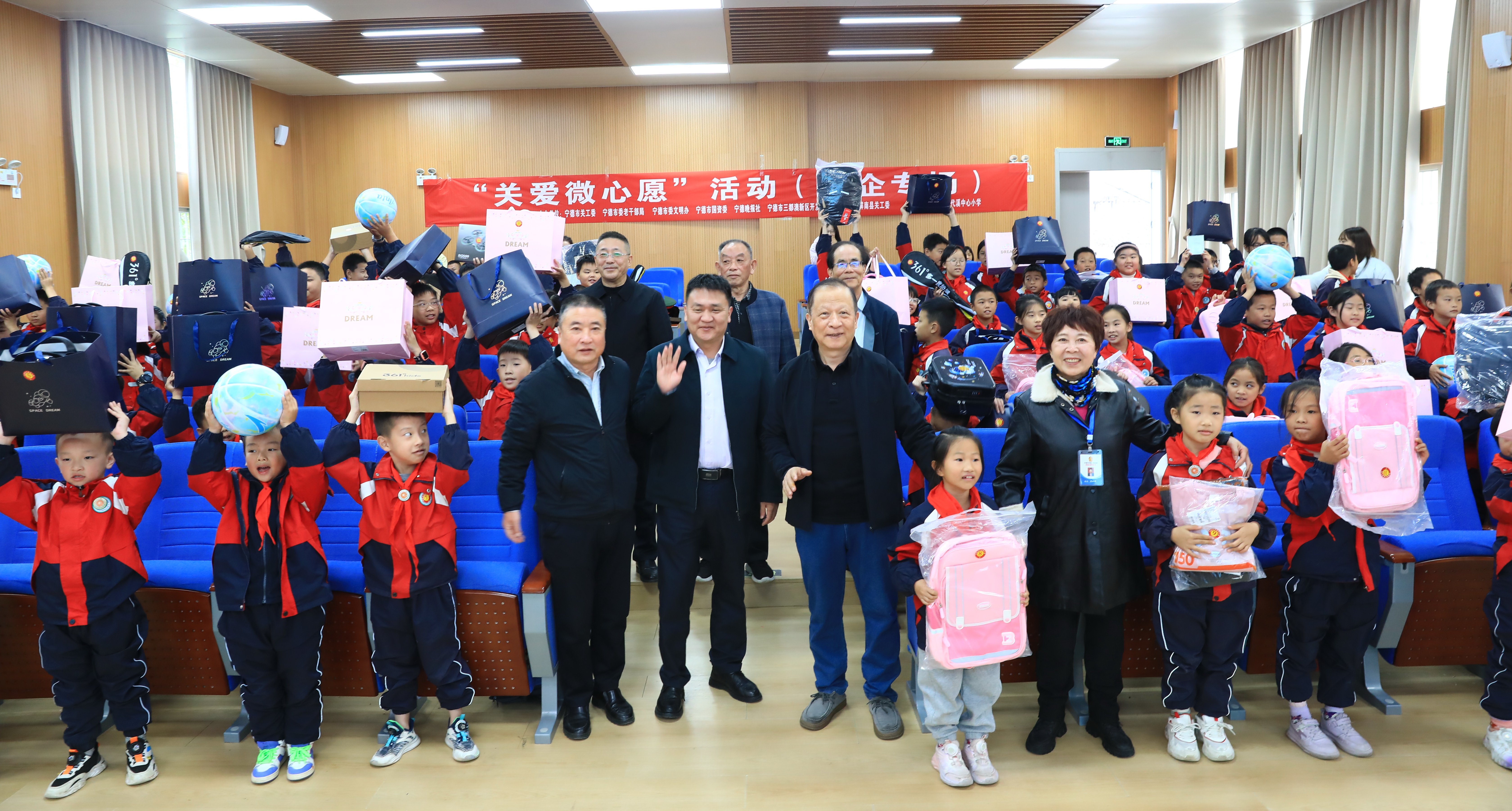 11月18日,屏南縣代溪中心小學(xué)的校園里暖意融融,學(xué)生們手舉嶄新的文具、運(yùn)動(dòng)鞋、書籍等禮物,齊聲表達(dá)感謝,當(dāng)天,寧德市“關(guān)愛微心愿”國(guó)企專場(chǎng)活動(dòng)在這里舉行。