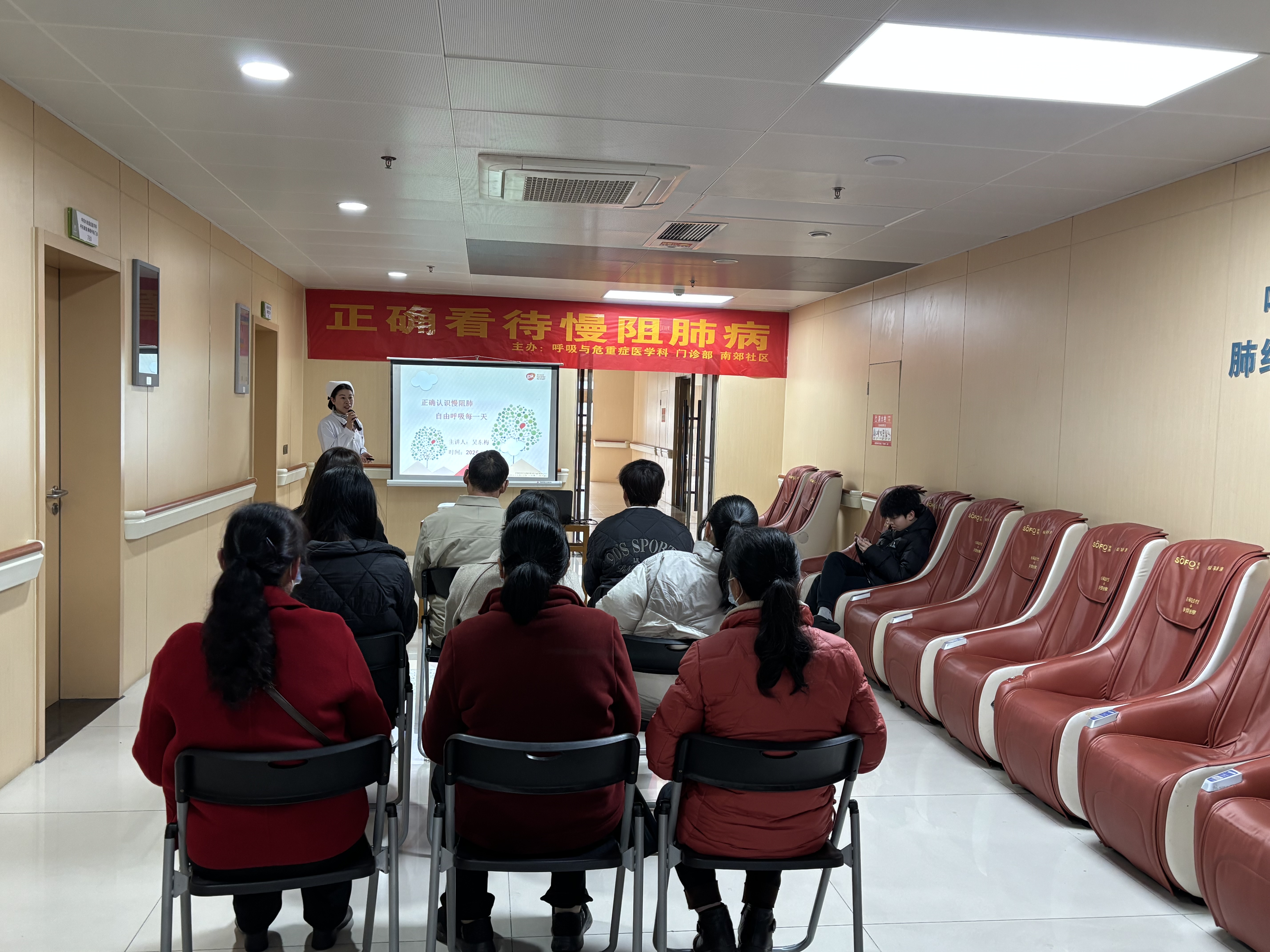 活動現場,呼吸與危重癥醫學科吳東梅主管護師運用通俗易懂的語言,為社區居民深入淺出地講解了慢阻肺的致病原因、典型癥狀、潛在危害以及日常管理要點,糾正“慢阻肺就是老慢支、無需重視”“氣喘是正常現象”等錯誤認知。她強調,慢阻肺可防可治,早發現、早干預,堅持長期規范治療與康復訓練是防治關鍵。