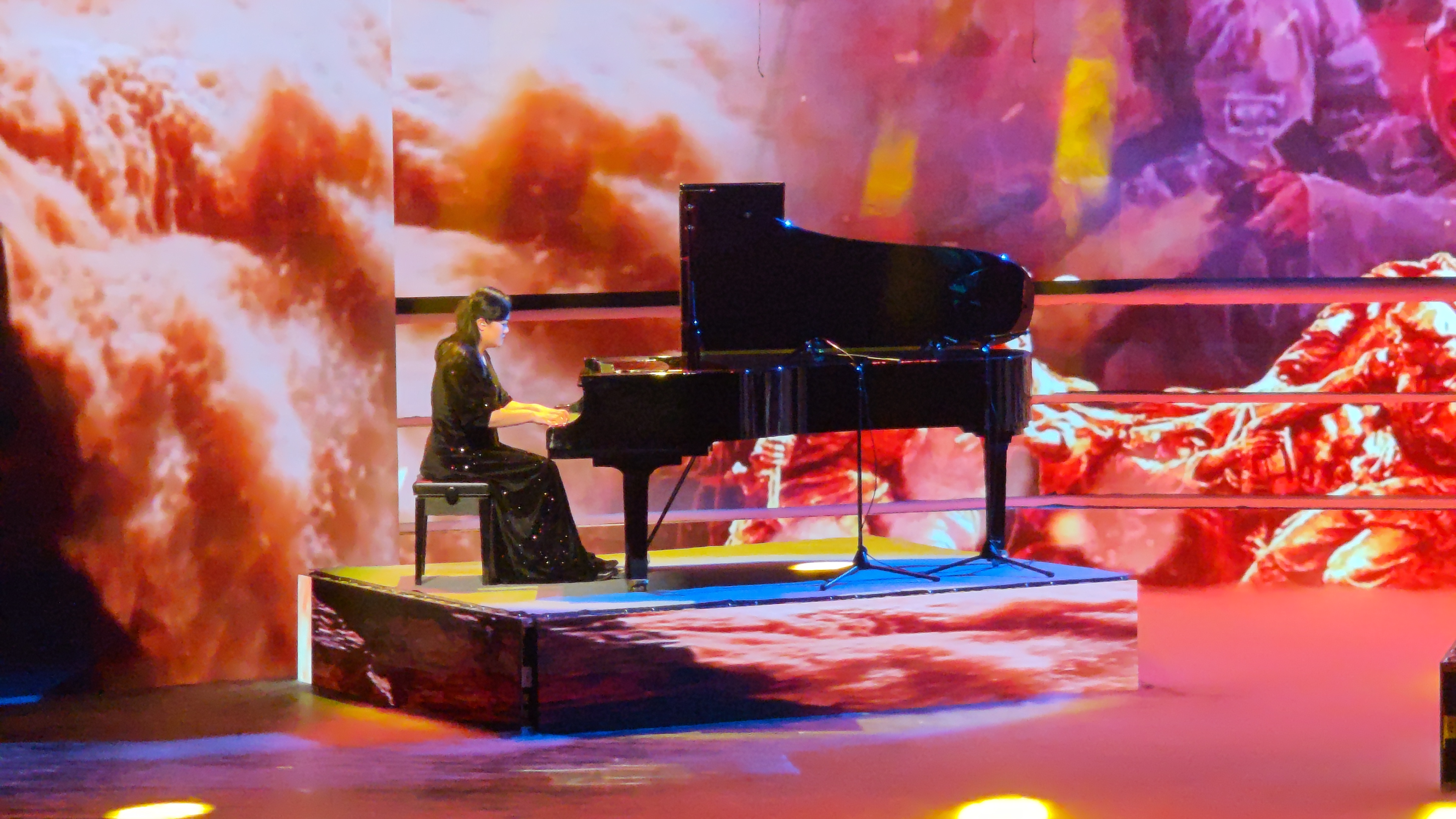 演出以激昂高亢的《保衛黃河》鋼琴曲拉開序幕,鏗鏘旋律瞬間點燃現場家國情懷,展現中華兒女不屈不撓的精神底色。隨后一首《龍的傳人》以雄渾合唱傳遞民族認同感,《畬家妹子》用悠揚曲調勾勒福安畬鄉風情;原創曲目《福安福氣飄蕩的地方》則唱出對故土的深情眷戀。