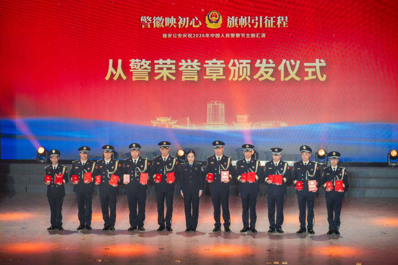 整場演出通過合唱、朗誦、小品、平講戲、情景表演等多種藝術形式,生動詮釋了新時代人民警察的使命擔當與為民情懷。匯演節目均由公安民警自編自演,融合了職業特色與藝術表達,不僅豐富了警營文化,也進一步凝聚了警心、激勵了斗志。當晚還舉行了從警榮譽獎章頒發和師徒結對儀式。