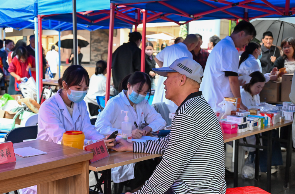 活動(dòng)現(xiàn)場(chǎng)設(shè)置十余個(gè)??屏x診臺(tái)及中醫(yī)適宜技術(shù)體驗(yàn)區(qū),專家黨員與醫(yī)務(wù)工作者為居民提供慢性病診療、用藥指導(dǎo)等服務(wù)。同時(shí)推出 “辨證施茶”特色服務(wù),開展口腔檢查、白內(nèi)障篩查、血壓血糖測(cè)量等項(xiàng)目,并發(fā)放健康宣傳資料與小禮品,普及健康理念。