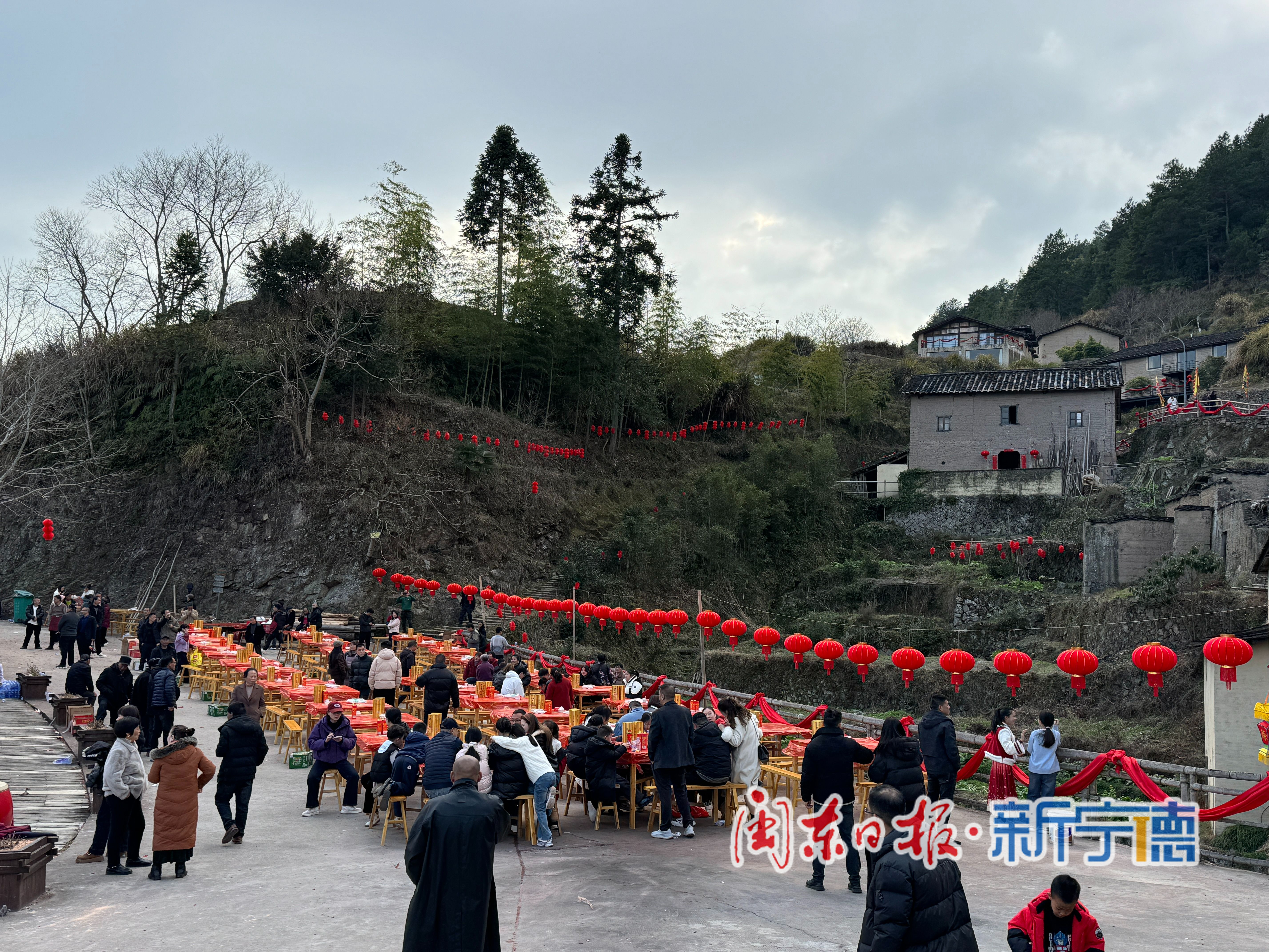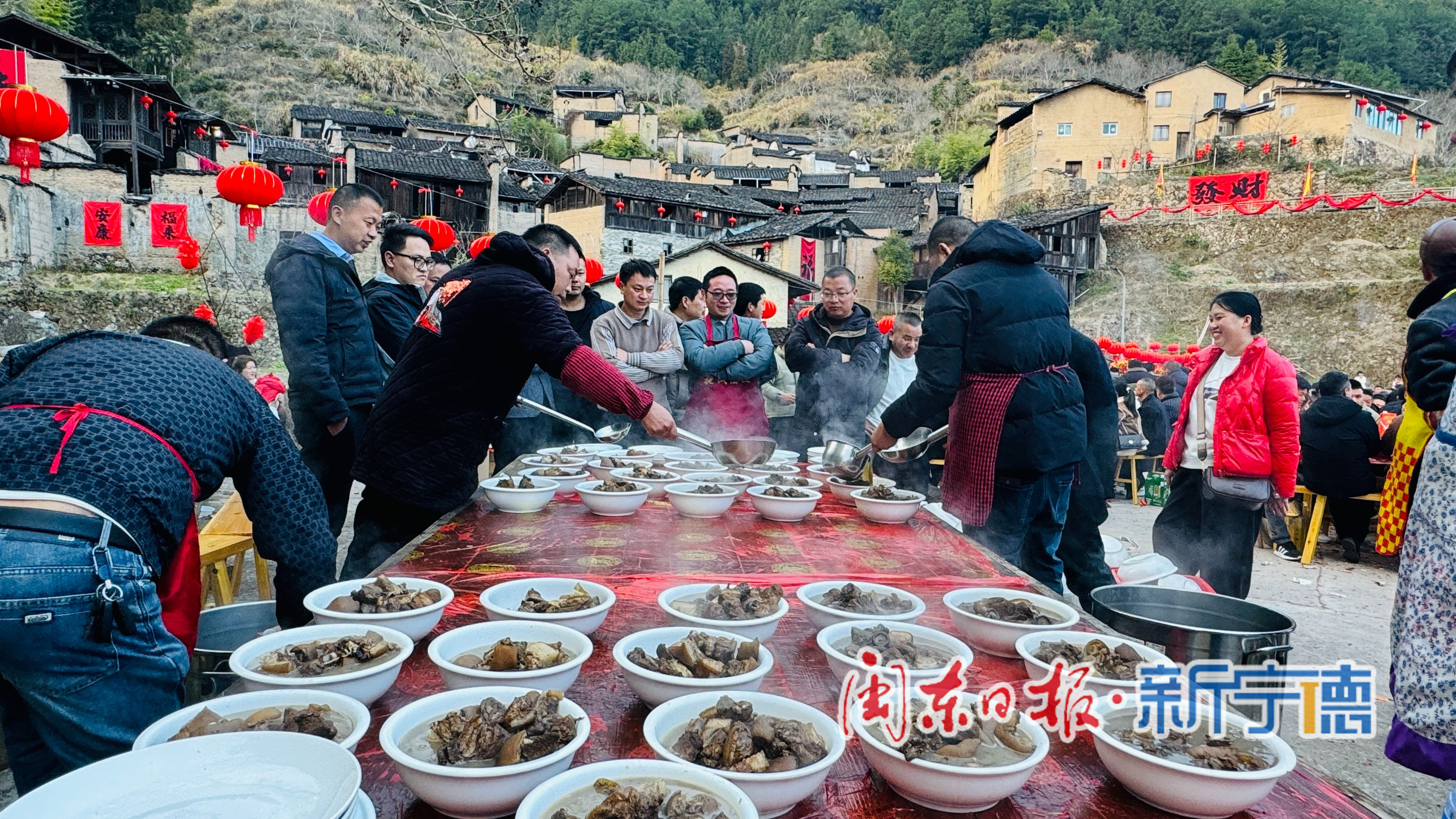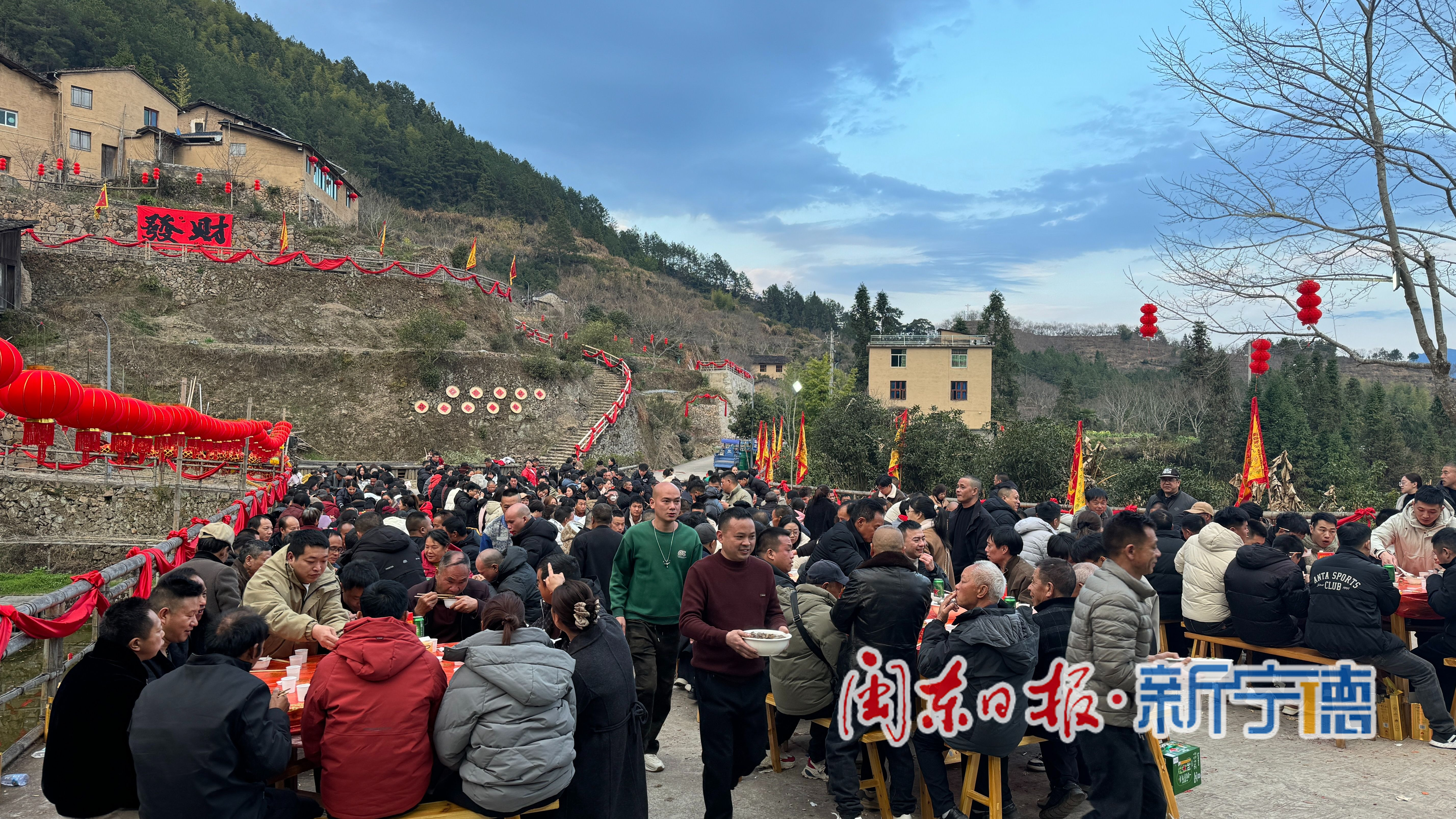 2月21日,走進屏南縣雙溪鎮(zhèn)前洋古村,青瓦黃墻間紅燈籠高掛,年味正濃。數(shù)百名村民返鄉(xiāng)團聚,沿村道擺開長席,共享家鄉(xiāng)菜肴,共慶新春佳節(jié),現(xiàn)場笑語喧闐、煙火氣十足。