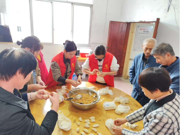 活動當天,壽寧縣民政局、鳳陽鎮民政服務站、鳳陽鎮新時代文明實踐所、基德村村委會工作人員與益本社工志愿者齊聚基德孝老食堂,以“餃子傳情”的形式傳遞關懷。