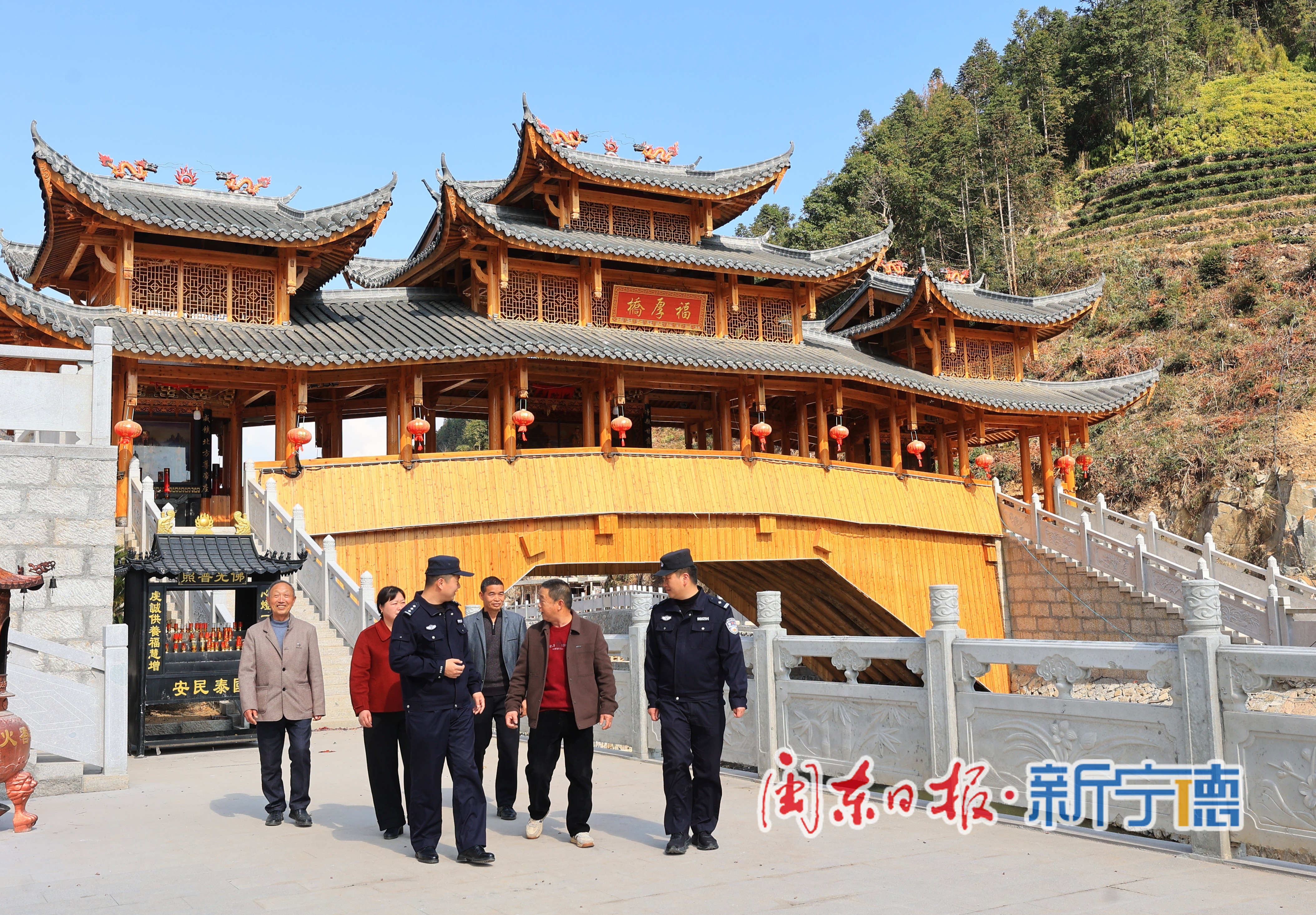 2月22日,正月初六中午,壽寧縣鳳陽鎮(zhèn)北路戲演藝中心內(nèi)人頭攢動(dòng),喝彩聲此起彼伏,雖人氣密集卻井然有序。趕在午場大戲開演前,壽寧縣公安局鳳陽派出所所長吳峰帶著民警穿梭于十里八鄉(xiāng)趕來的農(nóng)民觀眾間,一邊聊家常,一邊開展普法宣傳,叮囑大家遵守秩序、注意香燭煙火。當(dāng)天,該所警力還多點(diǎn)著力,或在主鎮(zhèn)區(qū)疏導(dǎo)交通,或深入福厚村木拱廊橋觀光區(qū)排查火災(zāi)隱患……這是鳳陽派出所春節(jié)安保的一個(gè)生動(dòng)縮影。