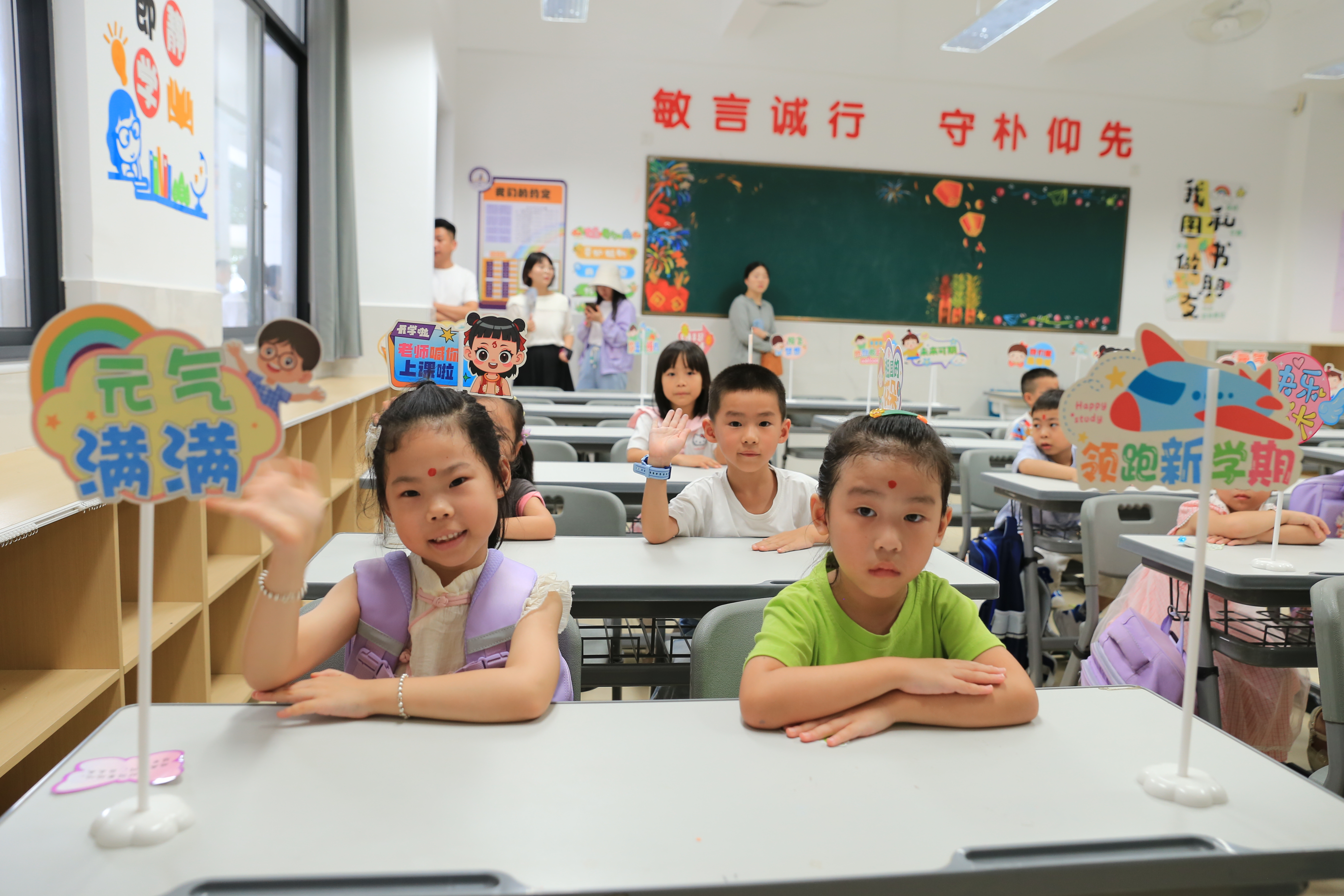 教室里,整齊的桌椅、可愛的黑板報、活力滿滿的桌牌,家長和老師們準備的可愛裝飾消除孩子們的陌生與不安,讓孩子們在歡聲笑語中開啟成長新旅程。