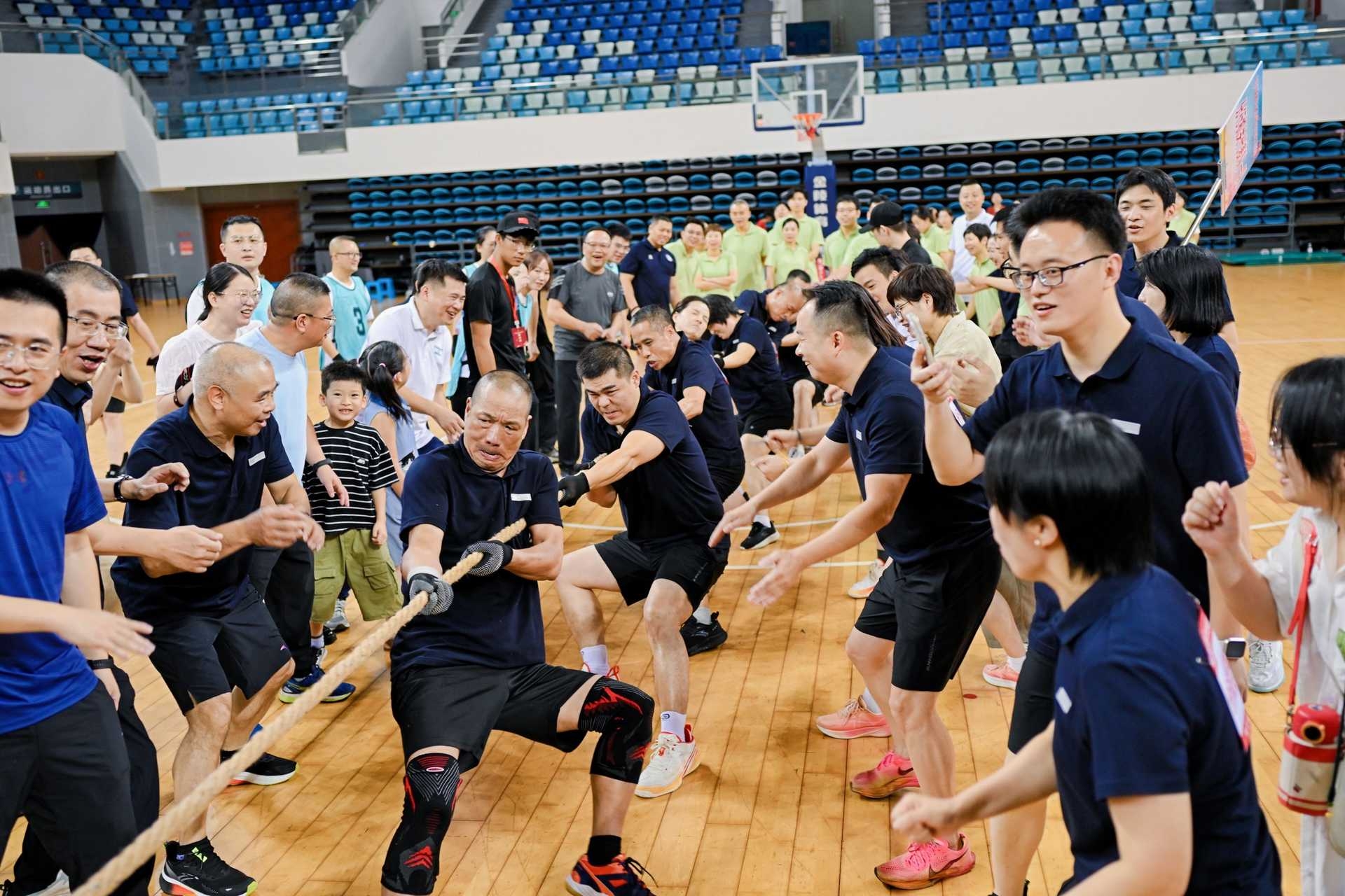 隨后,參賽隊伍按賽程分組投入角逐。田徑項目中,隊員們在“10×50米混合迎面接力賽”里全力沖刺、精準傳接;在立定跳遠中奮力起跳、突破自我。趣味賽則涵蓋“勇往直前”“同心筑夢”“砥礪前行”“再創新高”“集體跳繩”“力拔山河”等項目,過程中不時傳來加油與歡笑聲,整個體育館內,處處洋溢著熱血活力的競技氛圍。