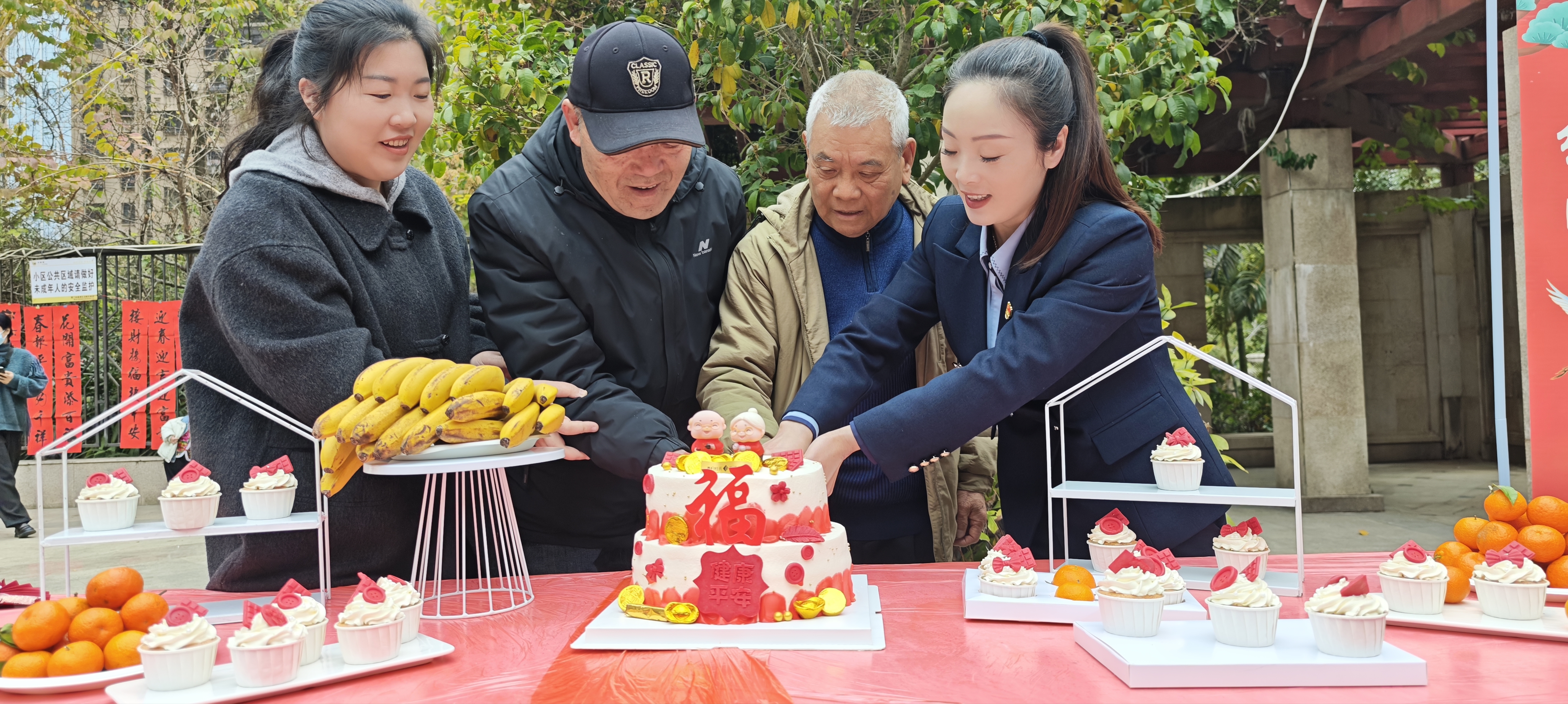 2月6日,在霞浦松港街道有秋社區富地康城噴泉廣場,一場特殊的生日會在此舉辦,數十位高齡壽星齊聚一堂,共慶生辰。
