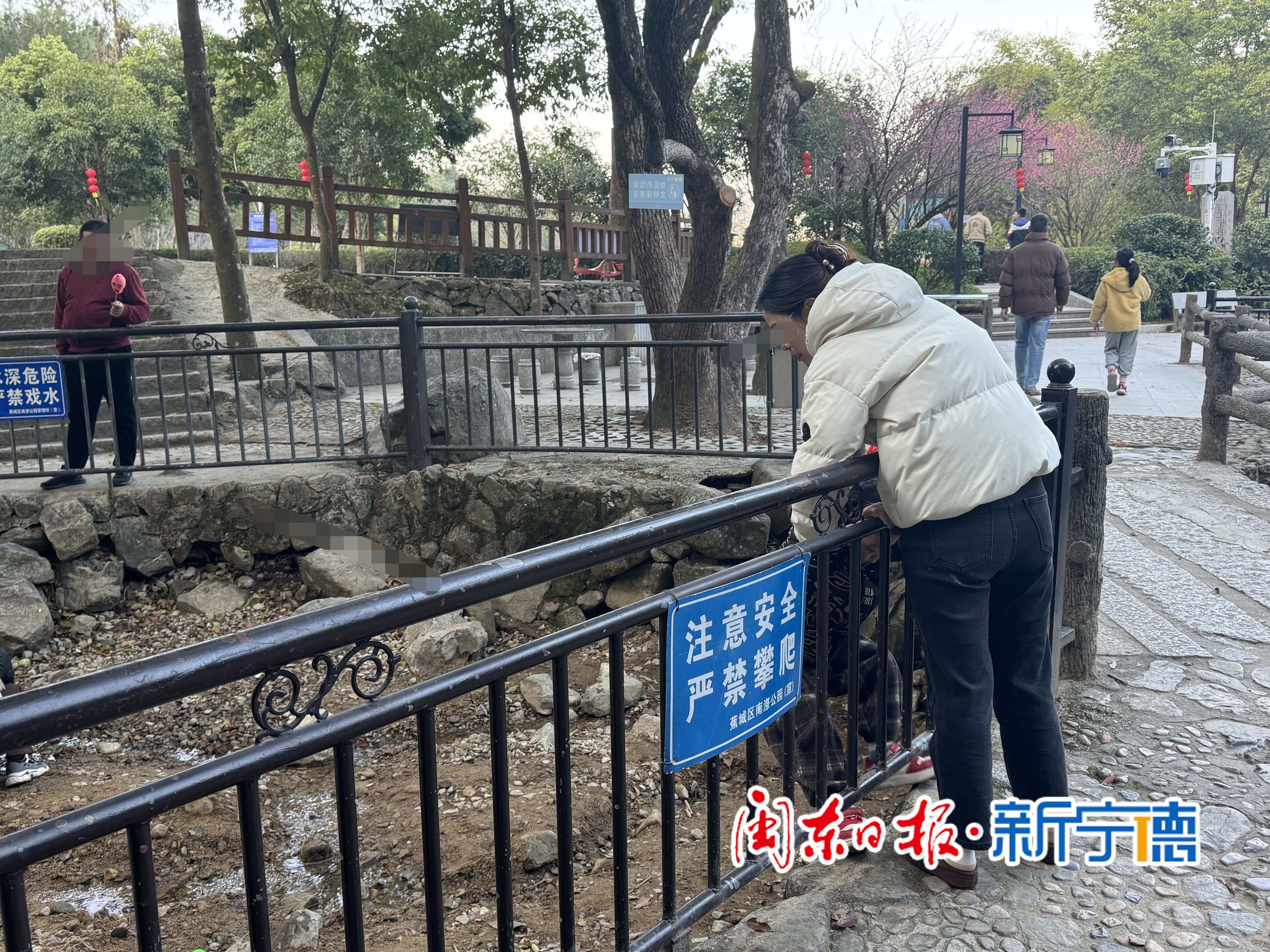 近日,蕉城區南漈公園梅花盛開,不少市民前去賞花打卡。2月8日,記者在園區看到,一些游客翻越護欄進入公園景點內部玩耍,一旁“注意安全嚴禁攀爬”“水深危險嚴禁戲水”的警示牌赫然在目。管理人員告訴記者,目前公園一些景點處于枯水期,部分區域地形濕滑、石塊松動,存在安全隱患。希望廣大游客自覺遵守公園管理規定,共同維護安全、有序、文明的游園環境。