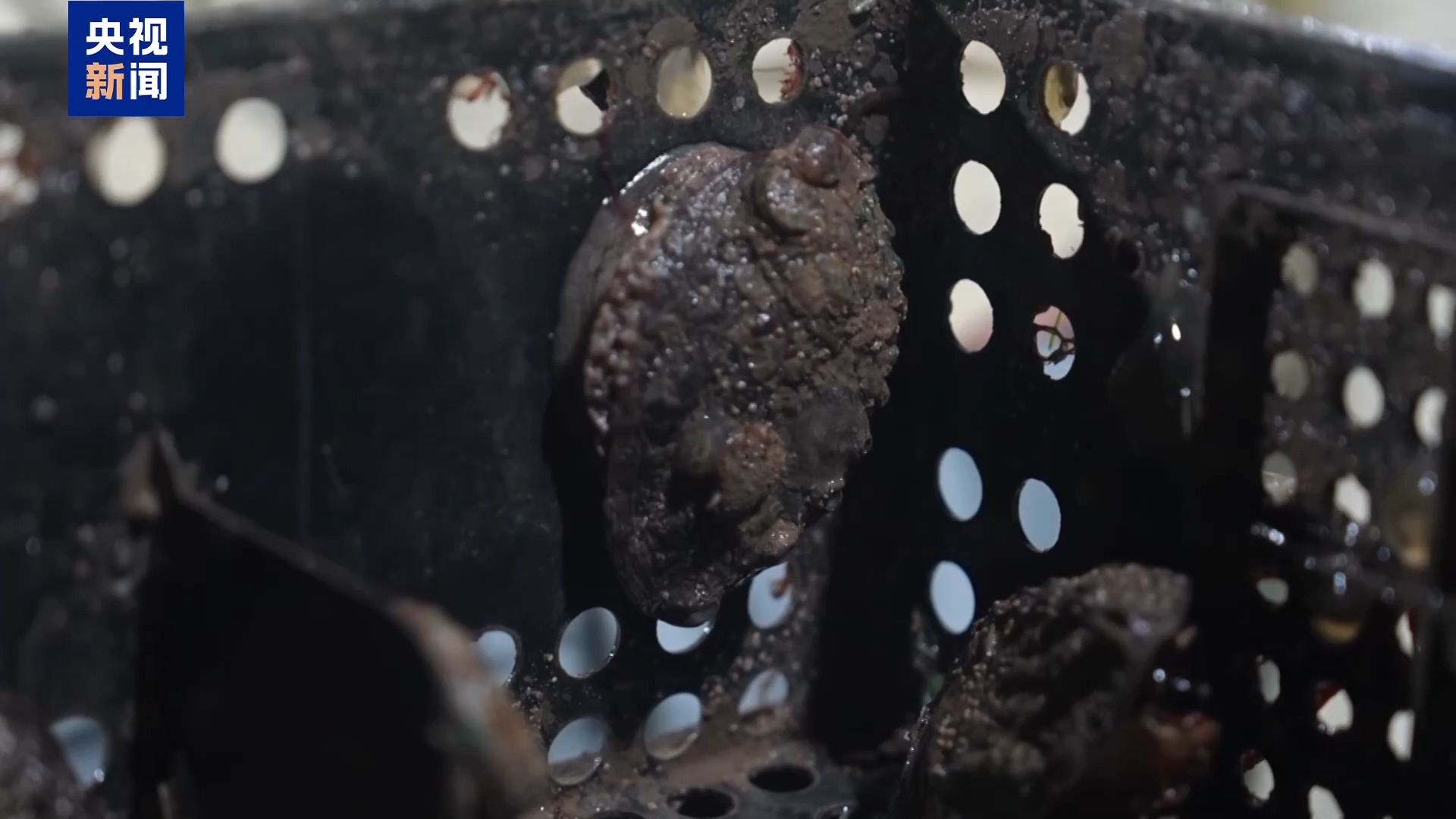 總臺(tái)記者 彭雨佳:漁民們要把鮑魚取出,稱重裝筐。新鮮的鮑魚會(huì)緊緊吸附在籠壁上,因此漁民們會(huì)用到一把沒有開刃的鈍口刀,可以在不傷害到鮑魚的情況下,把它們撬下來(lái)。撬的過(guò)程一定要快,這樣可以避免鮑魚受傷,提高存活率。