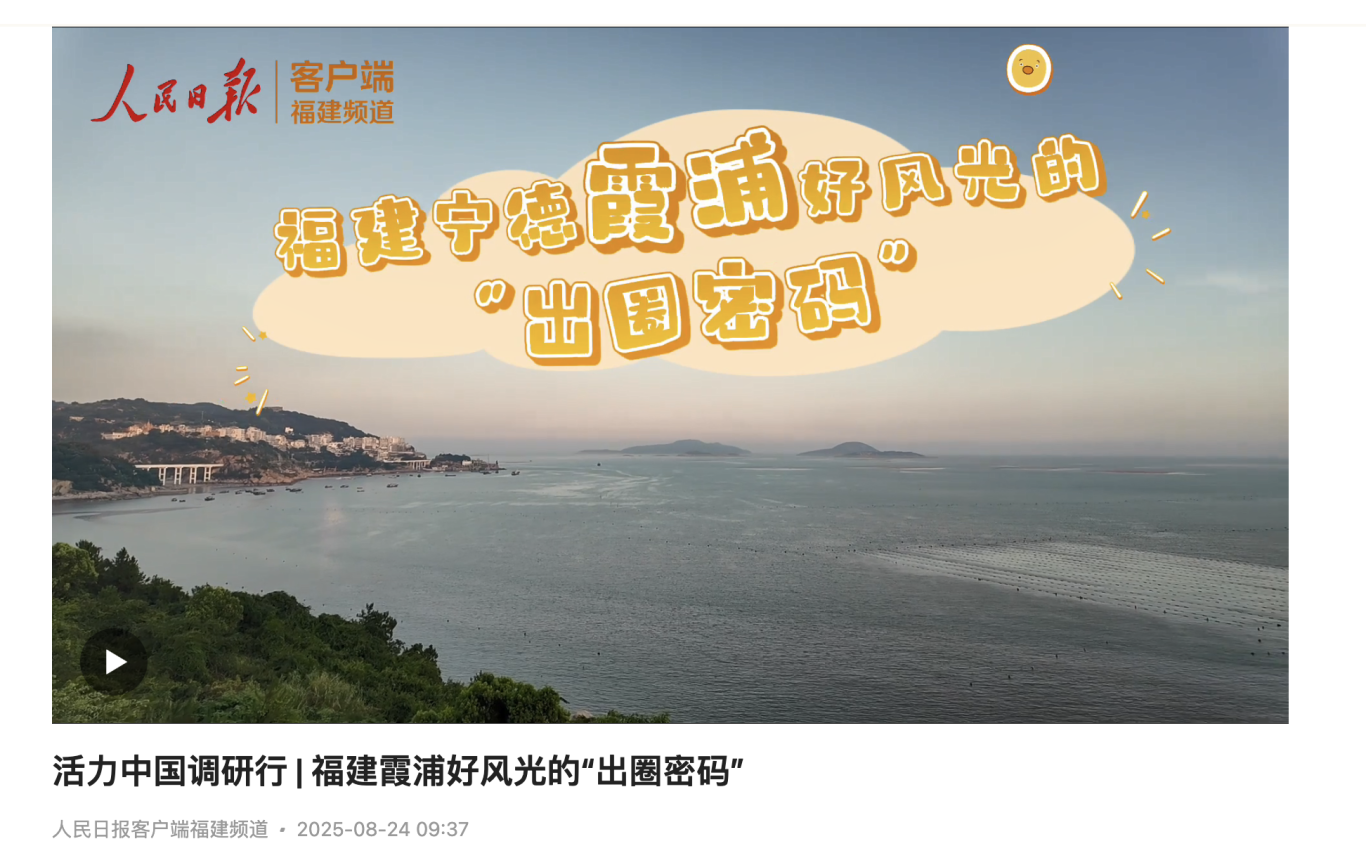 8月23日,人民日報英文客戶端發布報道《Captivating coastal vistas of Xiapu, Fujian Province》。記者來到霞浦,感受海岸壯美風光,看山海資源如何轉化為文旅產業優勢,好風光如何“出圈”!