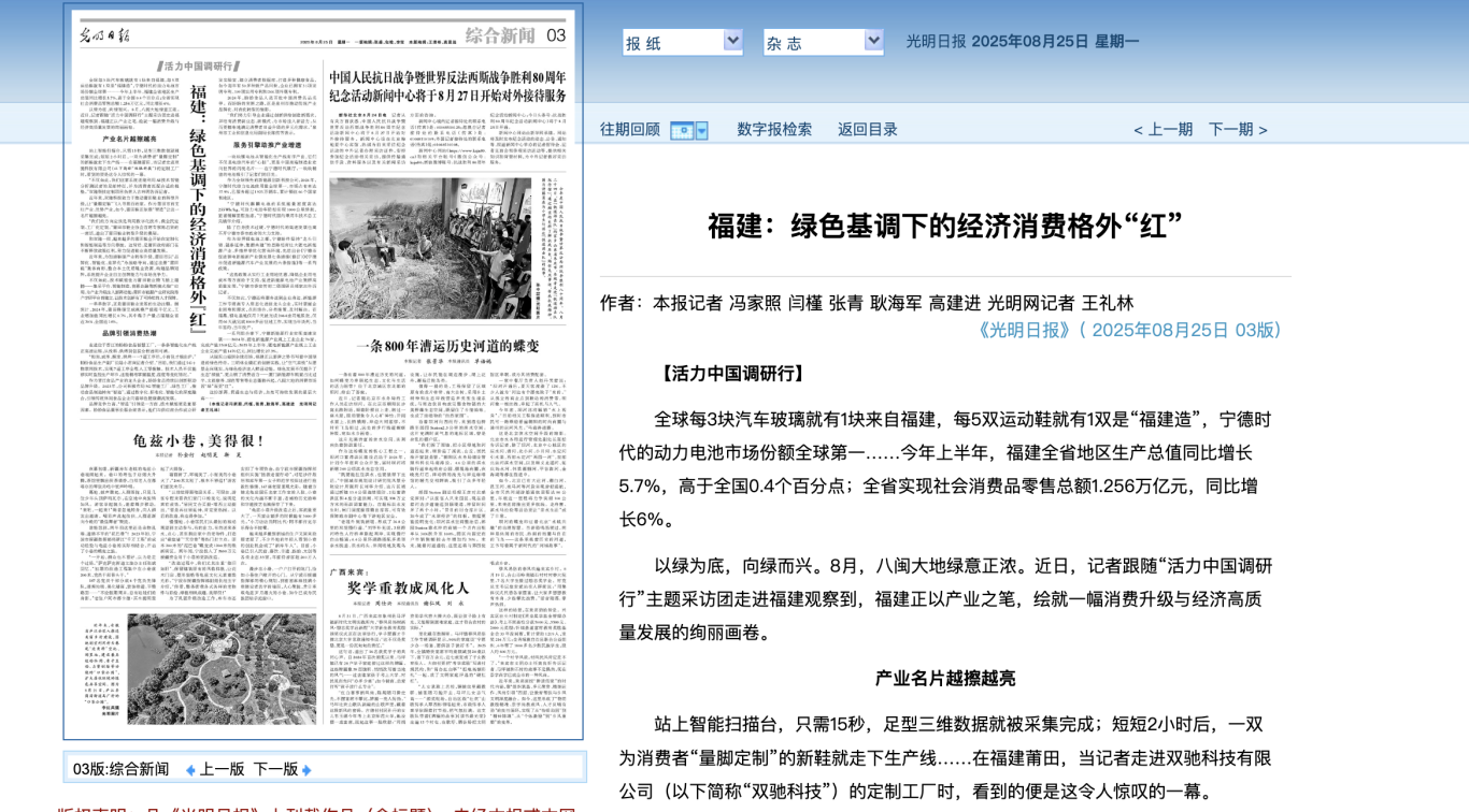 8月25日,光明日報頭條號發布報道《福建:綠色基調下的經濟消費格外“紅”》。