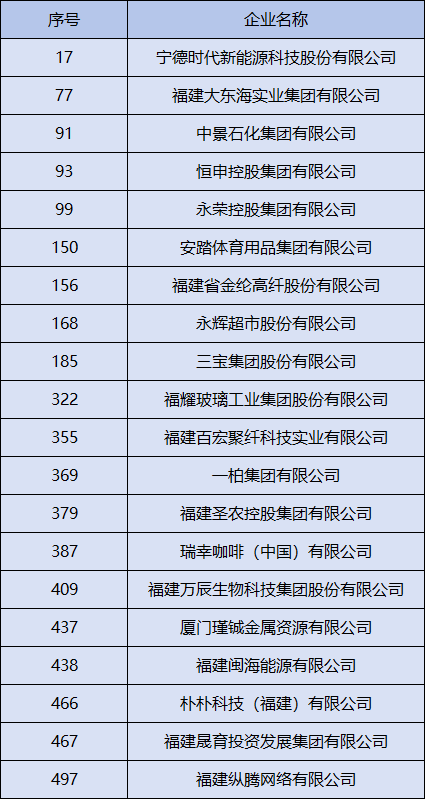 其中,福建20家企業(yè)上榜,一起來看名單:
