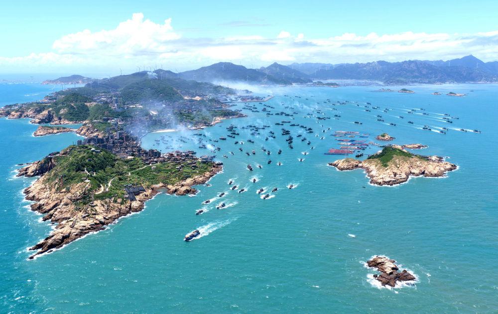 8月16日,在福建省福州市連江縣苔菉國家中心漁港,眾多漁船揚帆出海。新華社發(王旺旺攝)