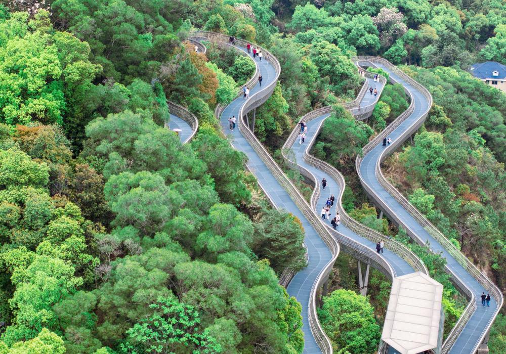 鬧市之中、蔥蘢之間,騰起一條串聯福州五大公園、全長約19公里的“福道”。它是國內最長的空中森林步道,設計師王文奎說:“我們盡心呵護每一棵樹、每一塊石頭,采用獨特的鋼架鏤空設計,讓陽光能透過棧道灑向大地,讓雨水能順著縫隙滋養草木,讓‘福道’成為人與自然對話的紐帶。”