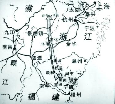新四軍六團北上抗日行軍路線圖