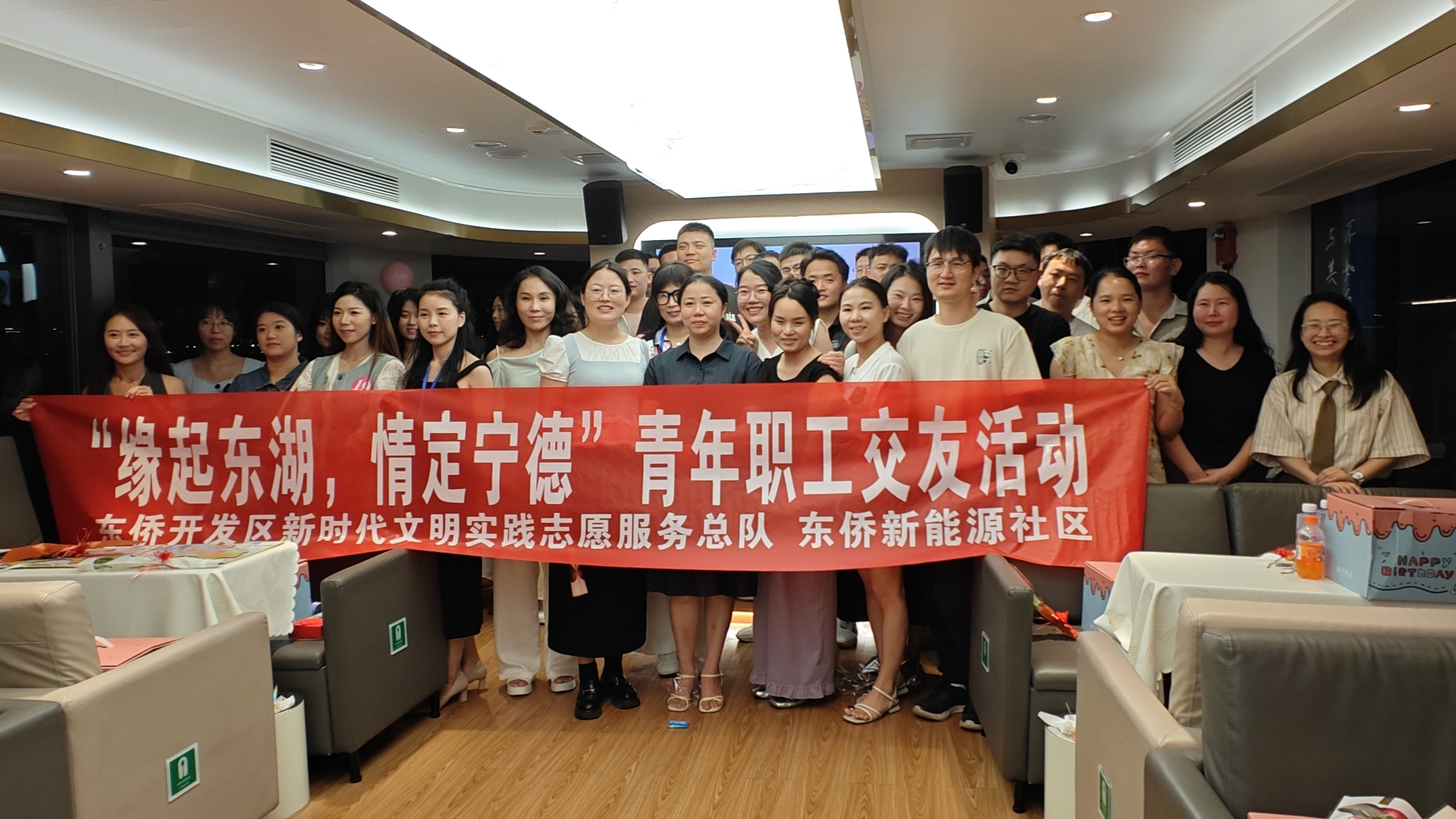 為加強(qiáng)青年職工溝通交流,倡樹文明婚俗新風(fēng),8月28日,東僑經(jīng)濟(jì)技術(shù)開發(fā)區(qū)新能源社區(qū)于“東湖之星”游船上舉辦“緣起東湖,情定寧德”青年職工交友活動。