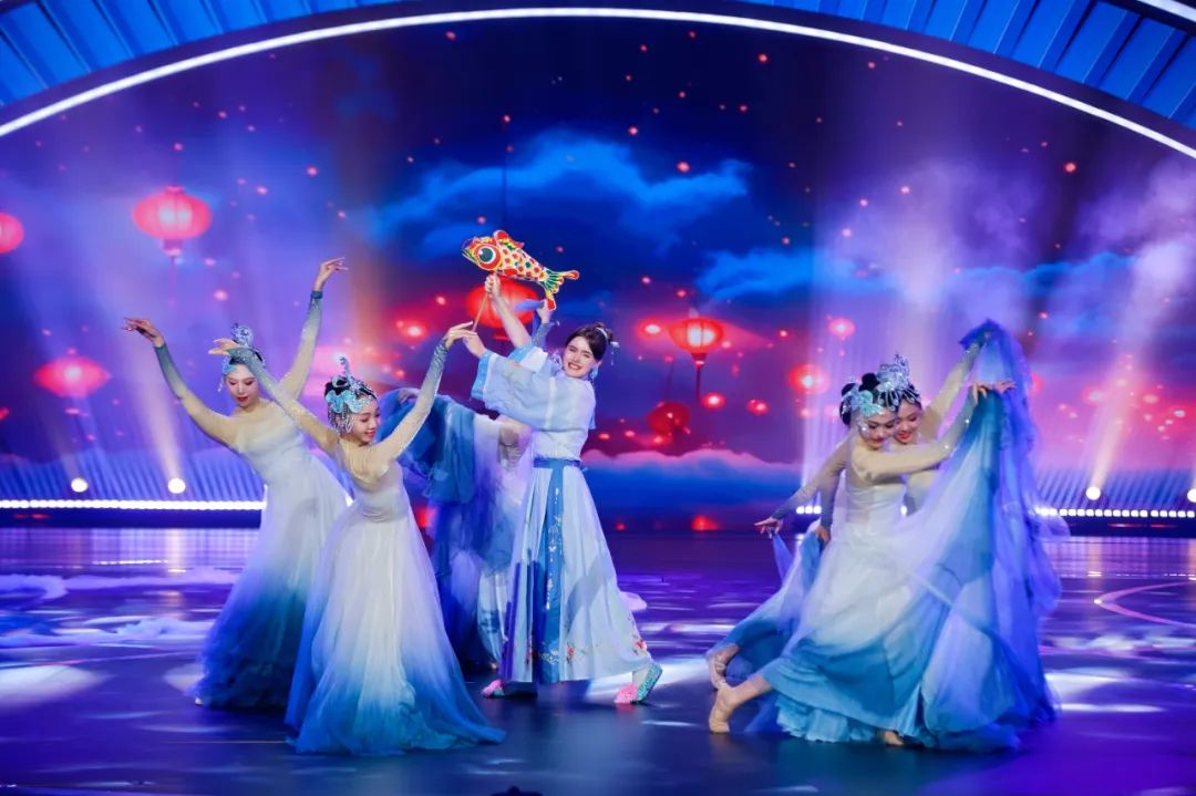 第三輪“跟著詩詞游中國”里,第二十二屆“漢語橋”世界大學生中文比賽優秀網絡人氣獎選手貝庭笙擔任串講人,五位選手融合古詩詞表演個人才藝,評委從藝術表現、技術技巧評判。