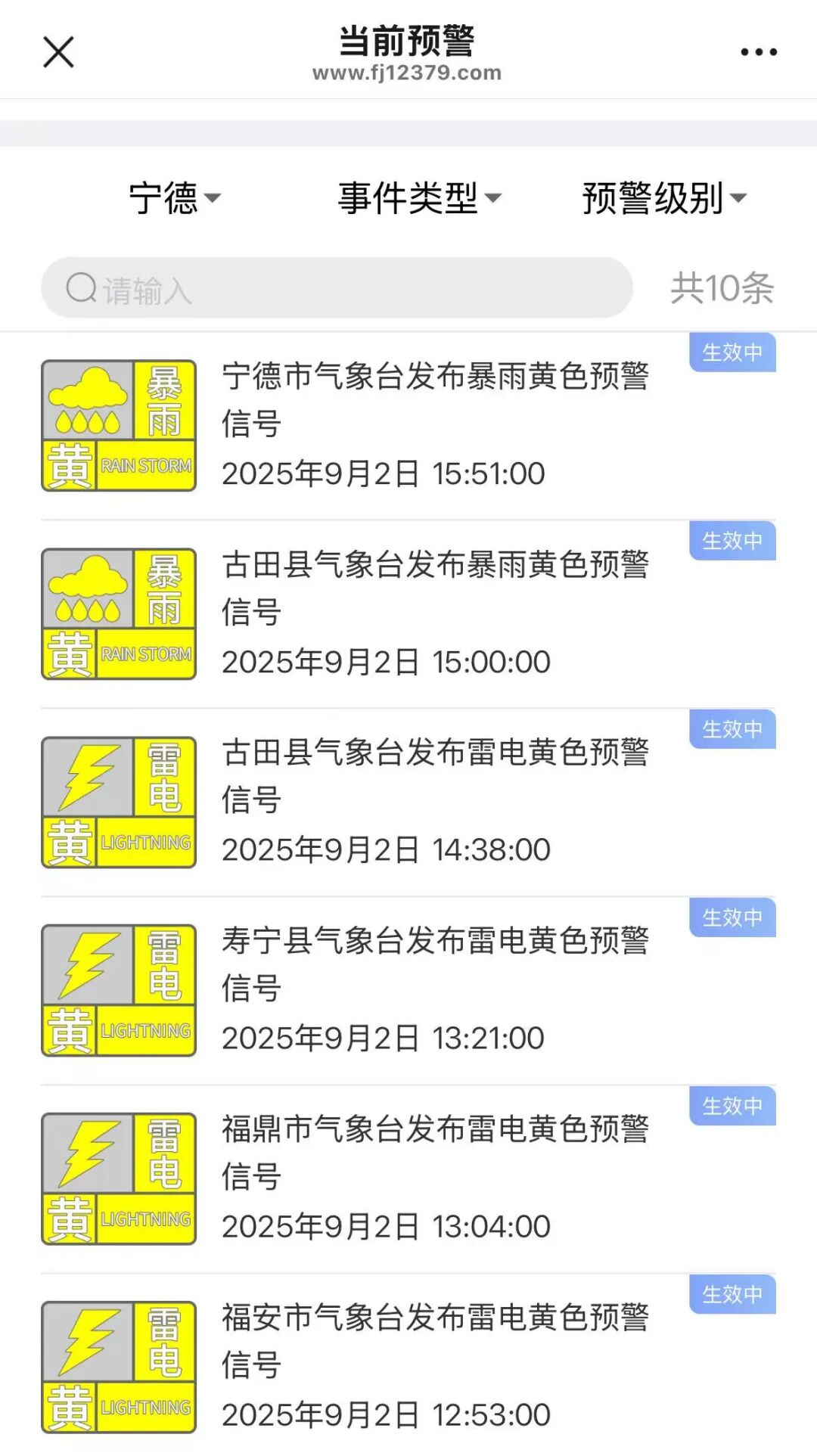今日寧德多地發布暴雨預警