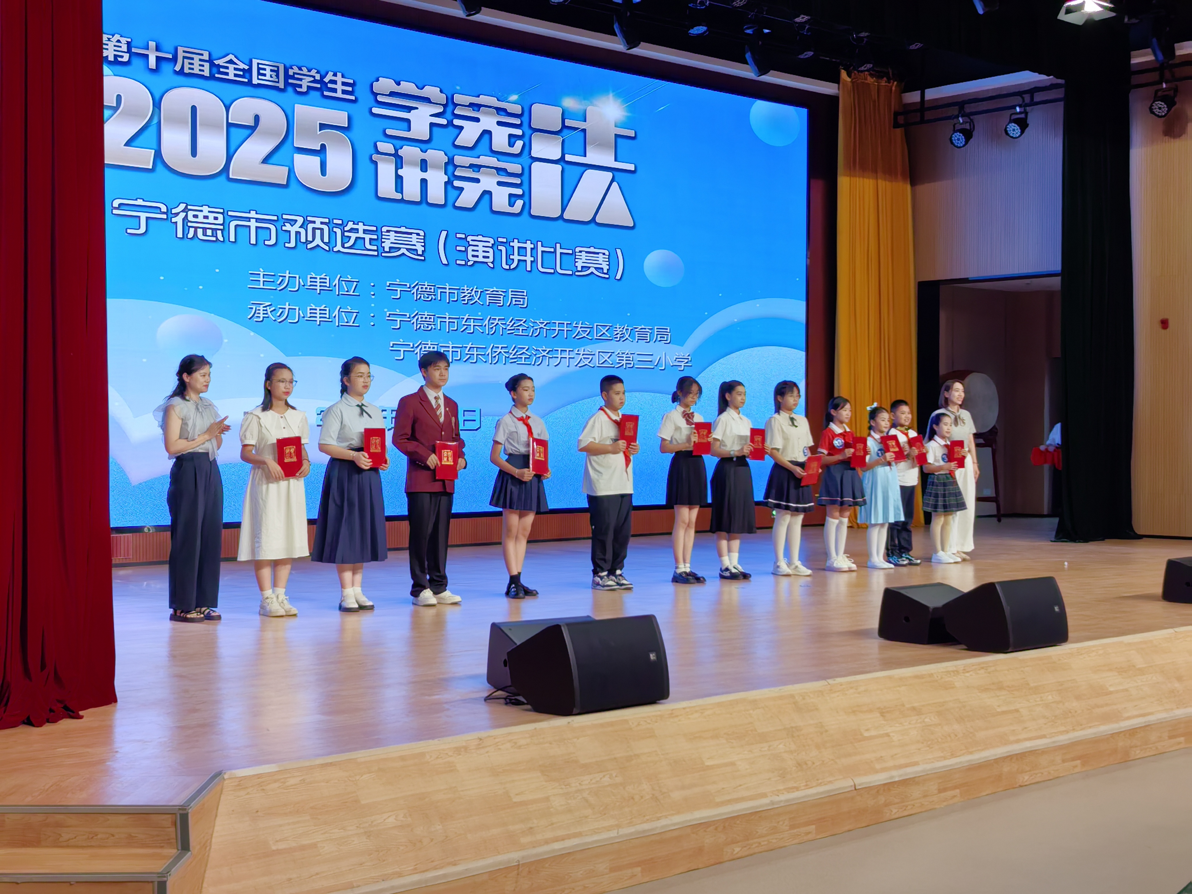 9月6日下午,由寧德市教育局主辦的第十屆寧德市學生“學憲法、講憲法”演講比賽在東僑經濟技術開發區第三小學舉行,來自全市小學、初中、高中(含中職)的參賽選手們依次登臺,為現場觀眾帶來了一場生動的憲法宣傳課。