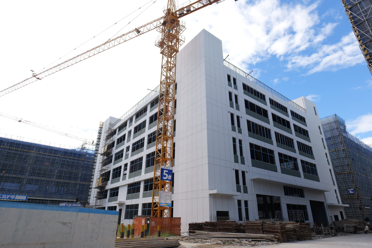 目前,園區內各主體結構相繼封頂,外立面裝修同步推進,園區雛形初顯。