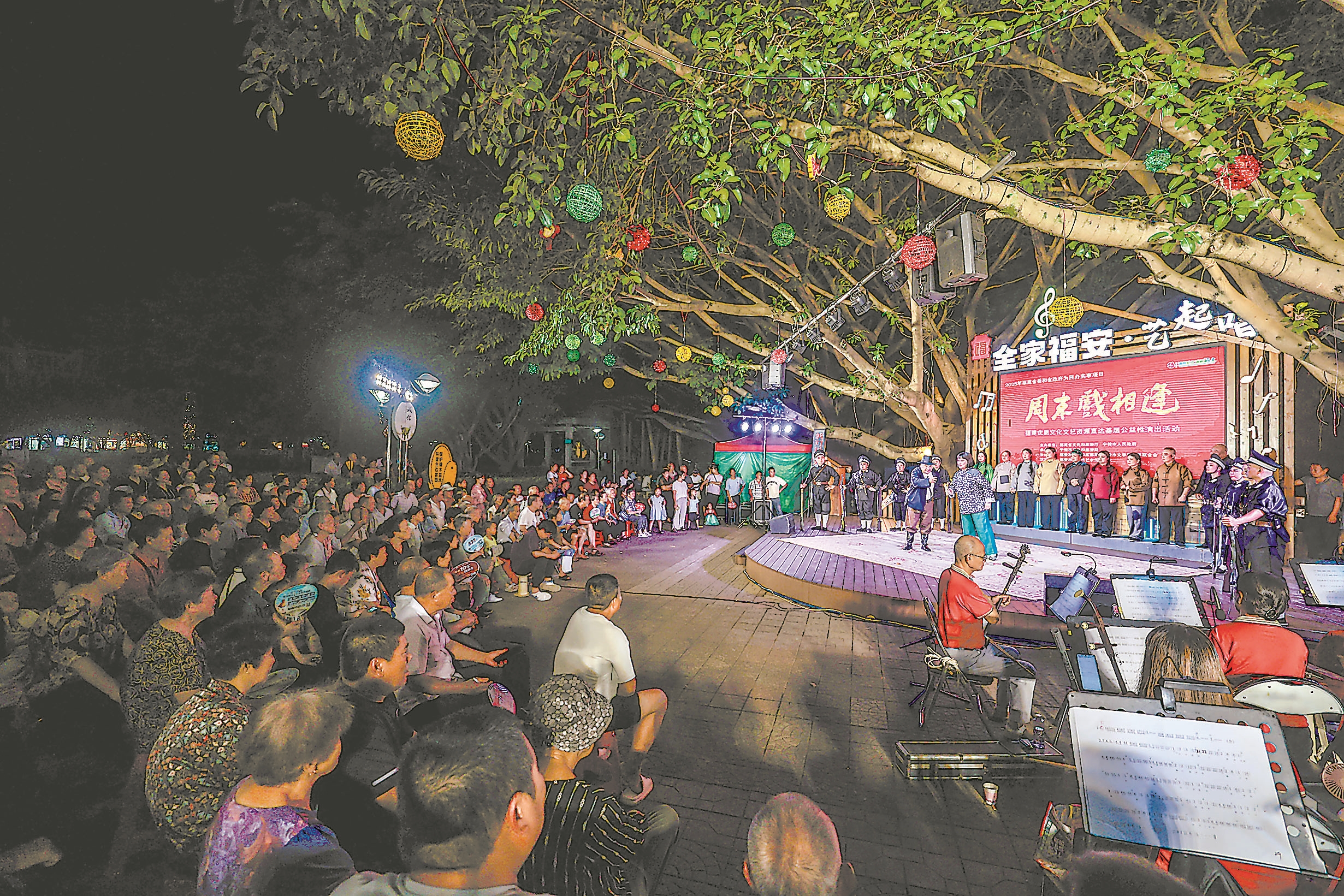 作為一名資深戲迷,家門口的平講戲表演,鄭火強(qiáng)場(chǎng)場(chǎng)不落。抵達(dá)時(shí),許多老朋友已早早等候在此,“全家福安·藝起唱”音樂活動(dòng)點(diǎn)里三層外三層,人聲鼎沸。“平講戲用福安本地方言演,聽著親切、帶勁。”鄭火強(qiáng)道出了老戲迷的心聲。