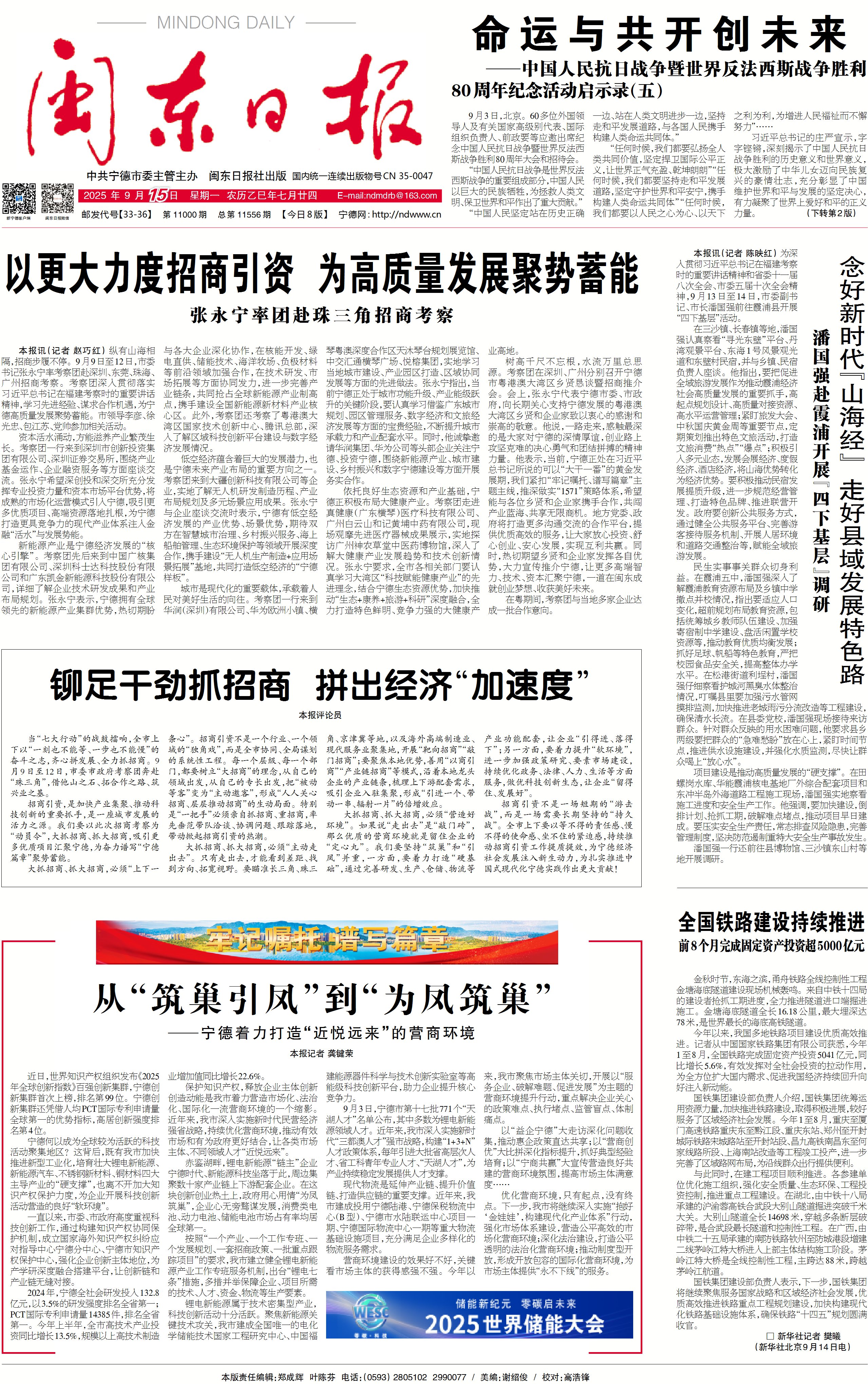 招商引資不是一場短期的“游擊戰”,而是一場需要長期堅持的“持久戰”。全市上下要以等不得的責任感、慢不得的使命感、坐不住的緊迫感,持續推動招商引資工作提質提效,為寧德經濟社會發展注入新生動力,為扎實推進中國式現代化寧德實踐作出更大貢獻!