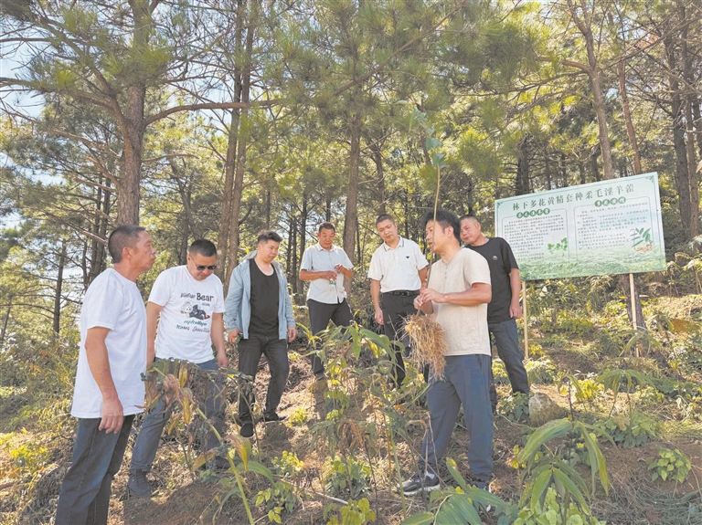 大安鄉水洋村聯合展鴻公司負責人向周邊產業薄弱村村民傳授黃精種植經驗。龔鍵榮 攝