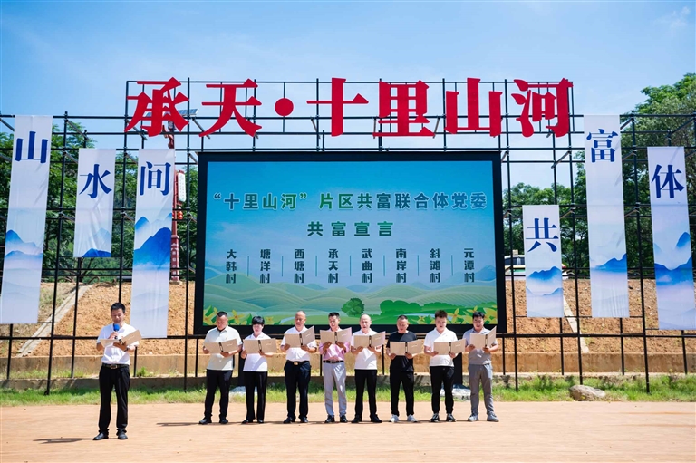 “十里山河”片區共富聯合體8個聯建村的黨支部書記共同宣讀“共富宣言”。( 武曲鎮政府供圖)
