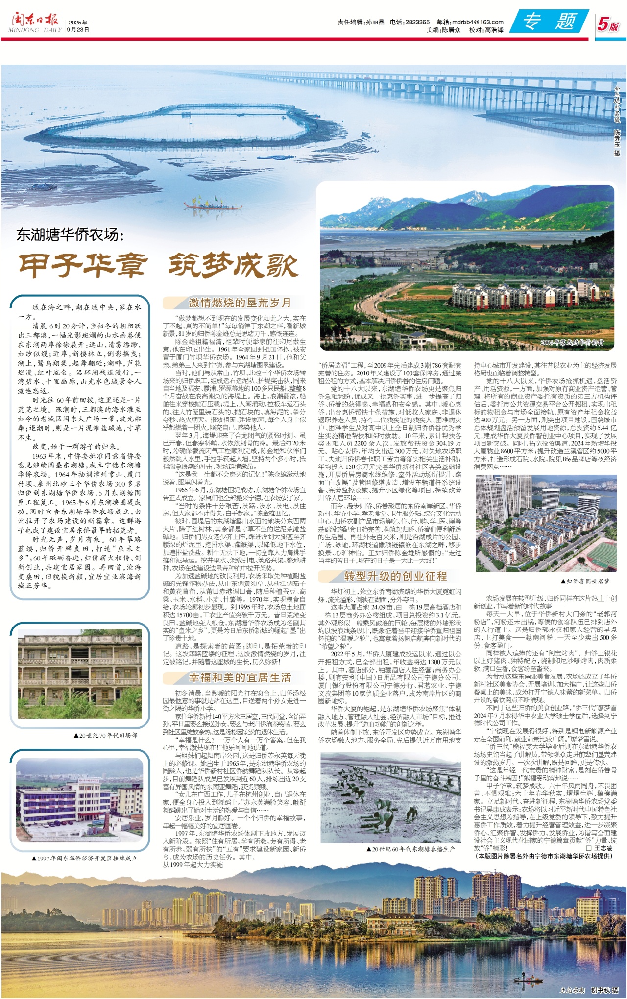 時光無聲,歲月有痕。60年篳路藍縷,歸僑開辟良田,打造“魚米之鄉”;60年砥礪奮進,歸僑薪火相傳、創新創業,共建宜居家園。再回首,滄海變桑田,舊貌換新顏,宜居宜業濱海新城正芳華。
