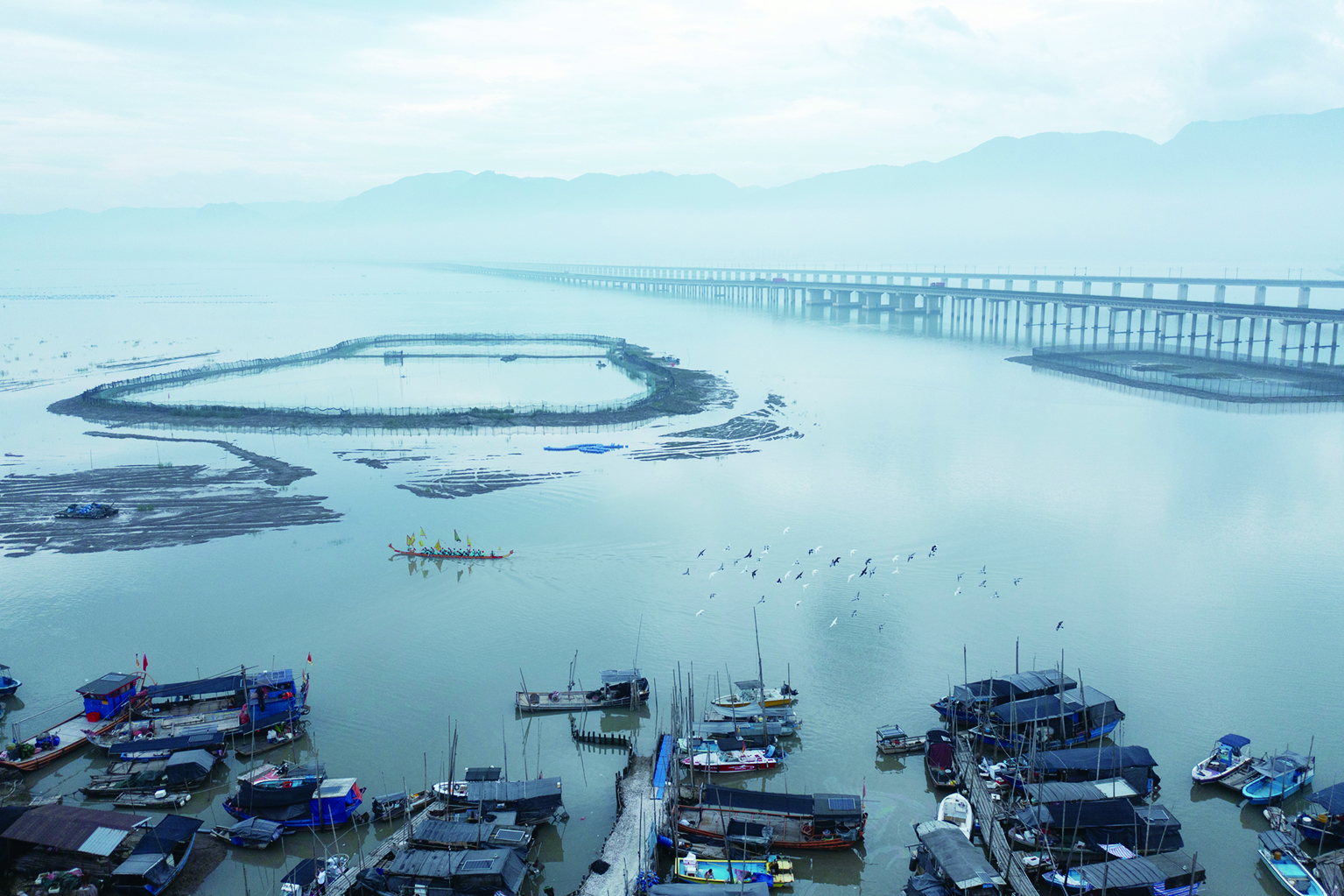清晨 6時20分許,當初冬的朝陽躍出三都澳,一幅光影斑斕的山水畫卷便在東湖兩岸徐徐展開:遠山,清霧縹緲,如紗似縵;近岸,新樓林立,倒影搖曳;湖上,鷺鳥翔集,起舞翩躚;湖畔,蘆花爛漫、紅葉流金。沿環湖棧道漫行,一灣碧水、十里畫廊,山光水色城景令人流連忘返。