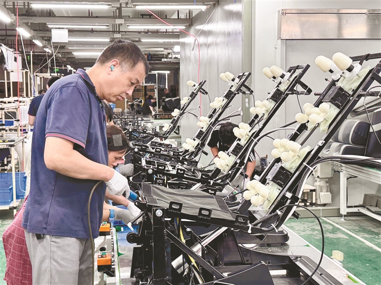 福建榮耀健康科技公司廠房內,工人在裝配按摩椅 黃楚妍 攝
