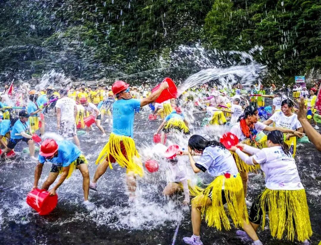 每天的14:00-16:00在白水洋水上廣場,開展水上龍舟、水上拔河、水上投壺、潑水互動狂歡等內(nèi)容的水上趣味體育運動會,游客可以現(xiàn)場組隊參與趣味互動體驗,獲勝者可以免費領(lǐng)取景區(qū)提供的精美小禮品一份,數(shù)量有限、先到先得。
