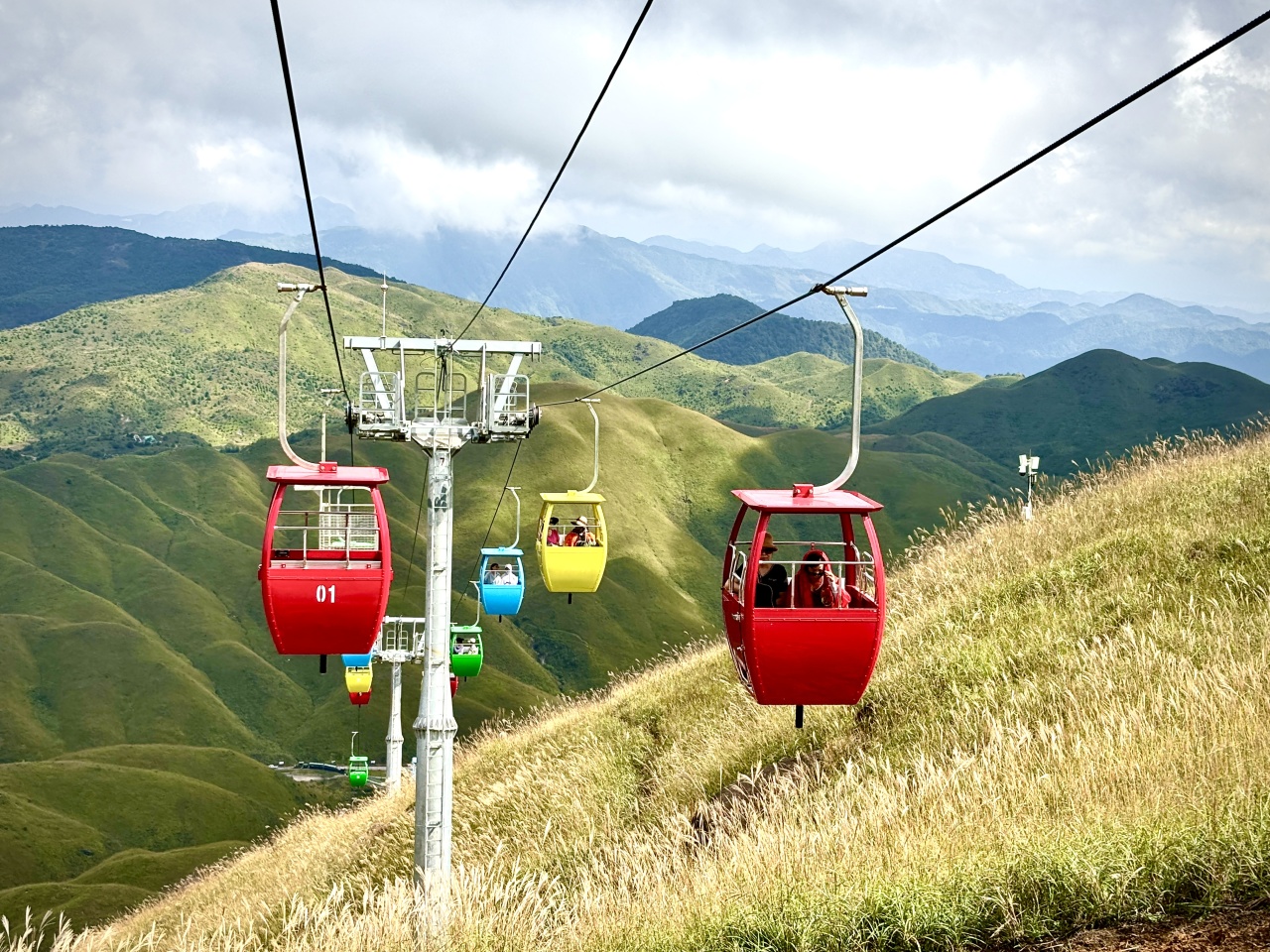 10月18日,游客乘坐柘榮鴛鴦草場客運索道,于云端悠然而行,一覽草山連綿的秋日畫卷。“第一次和男朋友一起坐纜車,像牽手在云端散步。”來自福州的張女士笑言,語氣里滿是浪漫與驚喜。