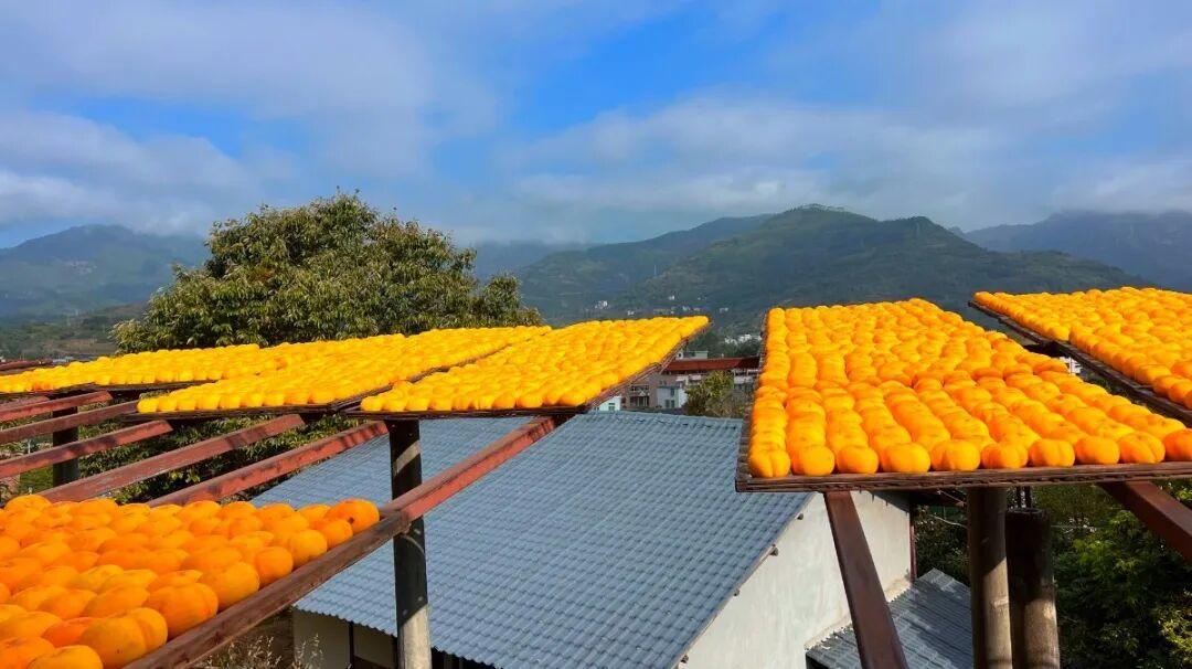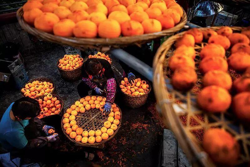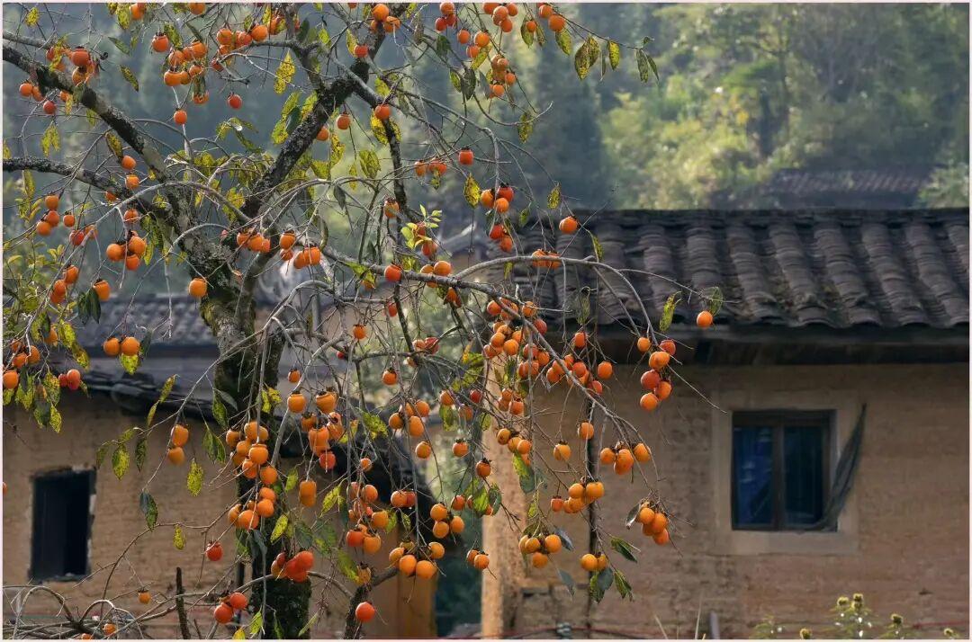 土墻黛瓦間,熟透的柿子掛滿枝頭