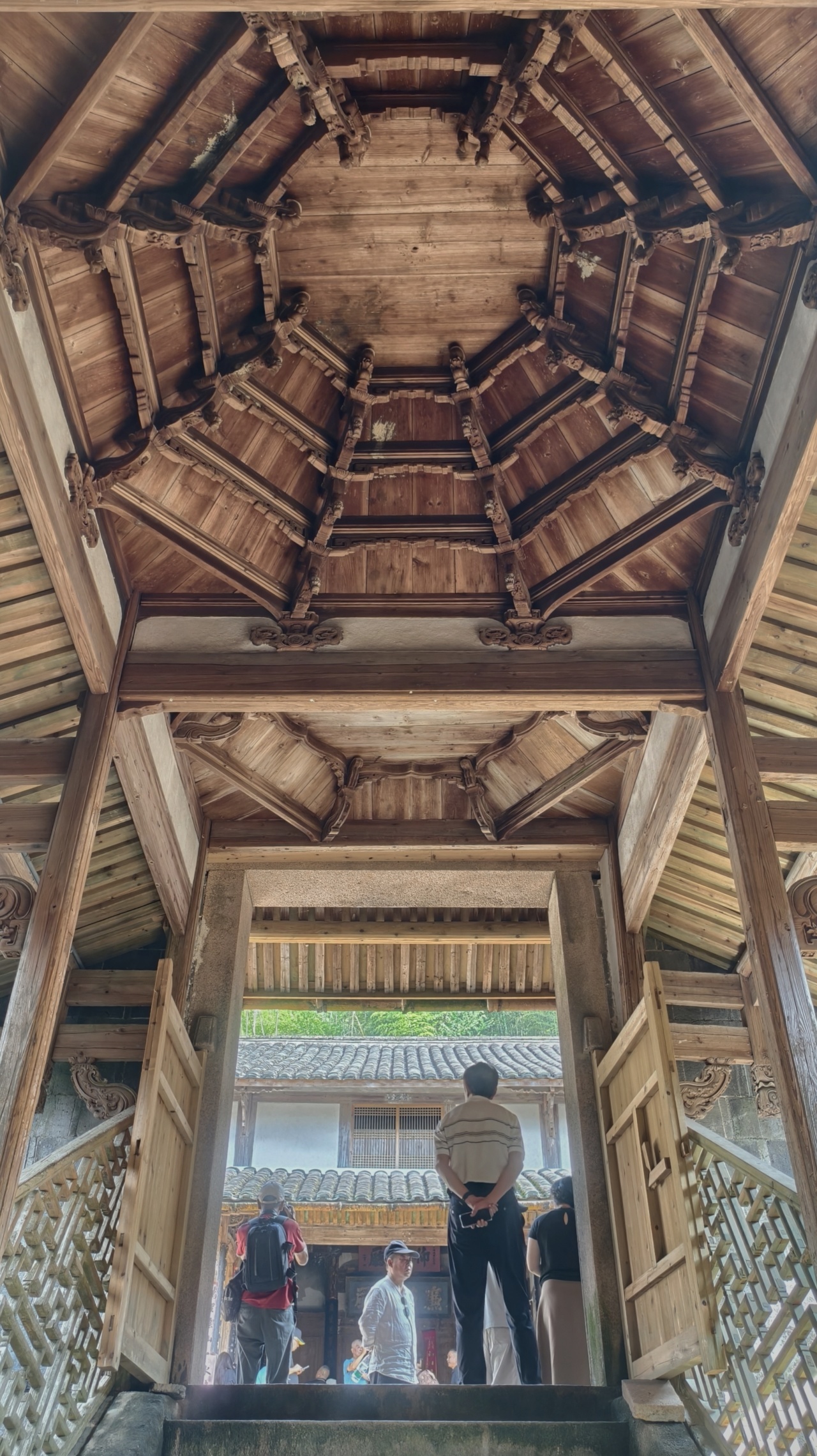 一個個故事,就像老宅的煙火氣,熏透了老宅,一場場講述如檐下滴雨,聲聲都在講述老宅春秋。我走走停停,或在檐下,或在廳前,或在天井中,或在一根廊前的柱子邊。用掌貼向墻壁青磚,留下一絲濕痕,輕握指關節叩擊廊柱,聽到輕輕回響,抬頭望屋檐、拱托、櫞條,濃郁的色澤幽幽閃耀,再看天井,幾片白云停歇在上方與我相窺。這座堪稱閩東規模最大的古民居之一,不是冰冷的建筑,是藏著故事的書,翻開來,每一頁都浸漬著油鹽醬醋茶的味道,浸漬著代代生息的汗息,在年年的四季里釀造家的芳香。