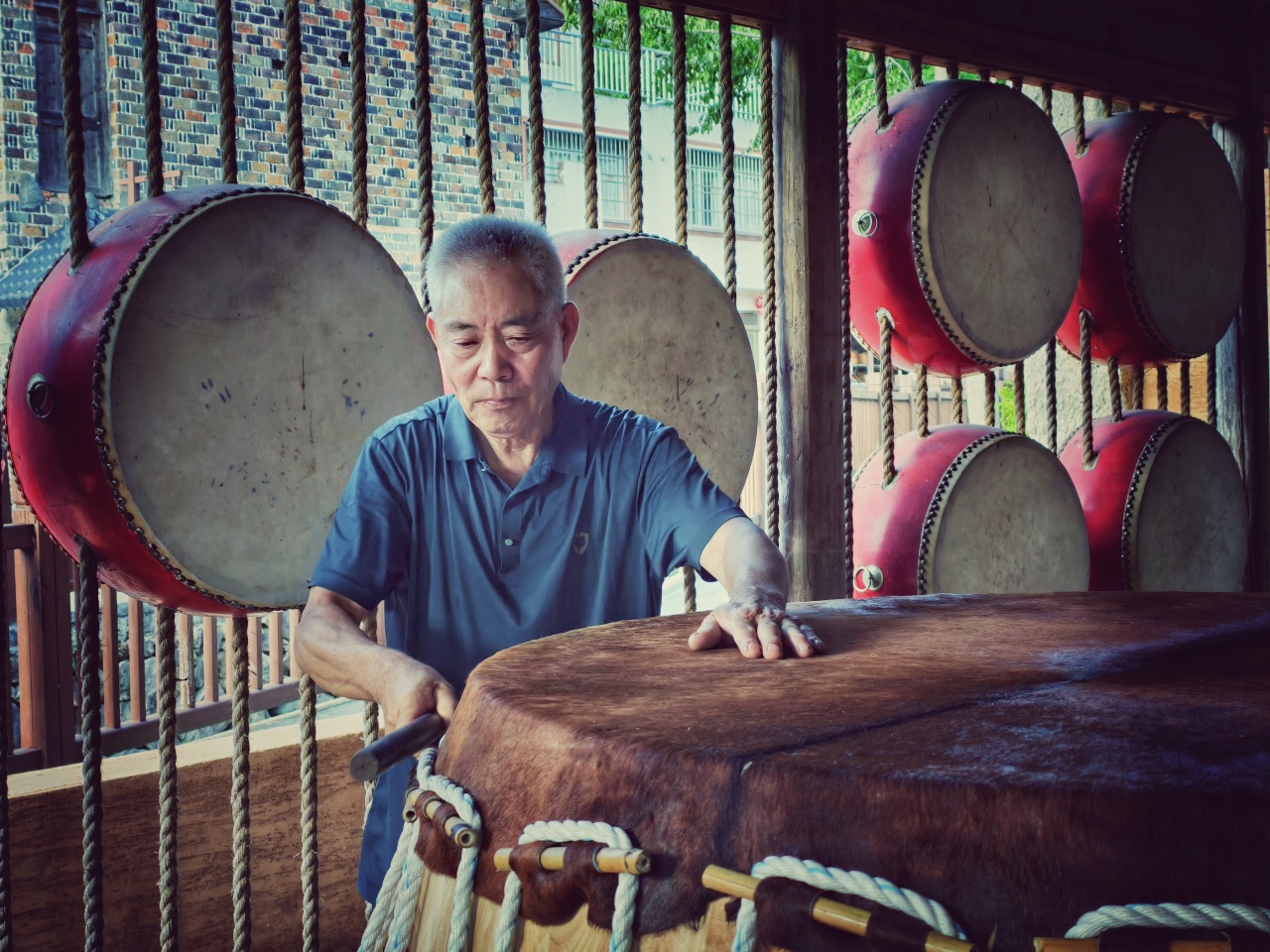 如果說剪紙是柘榮婉約的抒情詩,代表著柘榮人的溫婉,那么彭鼓便是雄渾的史詩,是力量的吶喊。這看似截然不同的兩者,在柘榮的土地上,一靜一動,一文一武,一如母親的細語,一如父親的號令。竹釘鼓制作技藝在柘榮這片熱土上已傳承了一百二十多年的歷史。清光緒25年(1899年),富溪鎮霞洋村的彭朝榜師從浙江制鼓師傅,并在習得制鼓技藝后不斷改良牛皮加工和竹釘制作技藝。在制鼓過程中,須對原材料嚴格把關,并考慮天氣時令、制鼓師傅心情對鼓皮的影響,賦予每一張鼓以靈魂和生命。從選木料、鋸木段、刨木片、曬烤木、拼接鼓身、箍鼓桶、牛皮處理、蒙鼓面、固定鼓皮、釘竹釘、裁牛皮、打磨、上漆、封鼓等二十多道工序,大約要一個月時間,匠人們虔誠打造,盡心盡力。一百多年來,竹釘鼓制作技藝歷經四代傳承,從未間斷,他們用心將彭鼓的每一個細節都做到極致,將彭鼓所承載的百年記憶與傳統文化,一同交付給未來,守護著這穿越時空的文化密碼。
