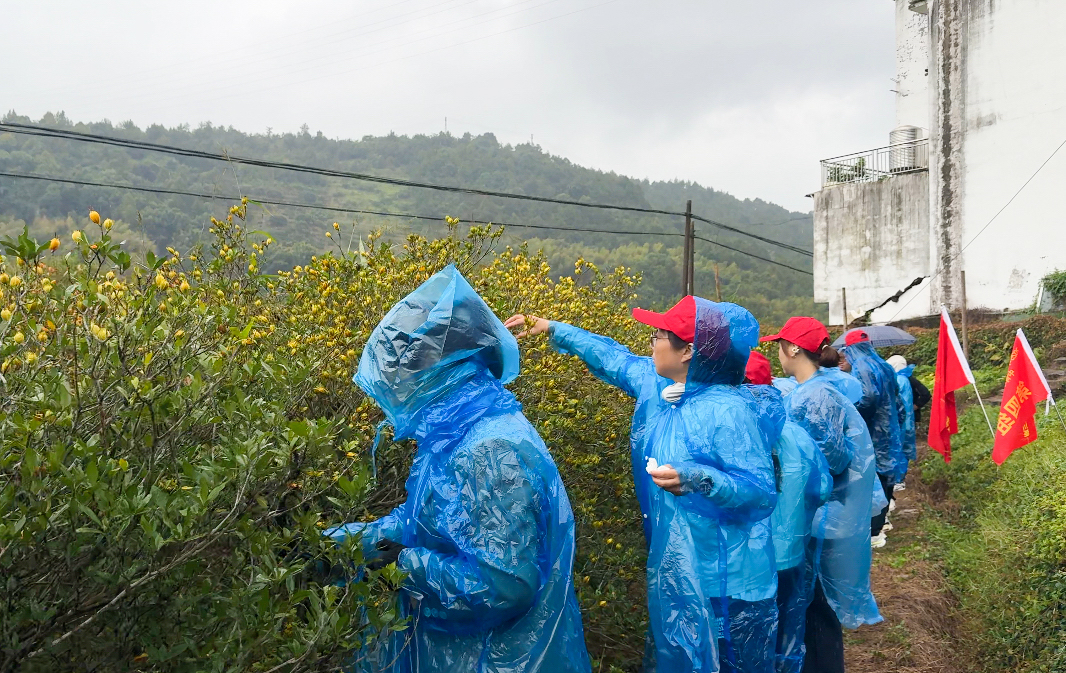 這份從實踐中汲取的熱血與擔當,化作了投身鄉村振興的滿滿動力:前往柯灣村、照瀾村開展調研,為產業發展出謀劃策;在雨中與農戶并肩勞作,搶收梔子;到果園里協助采收柑橘……