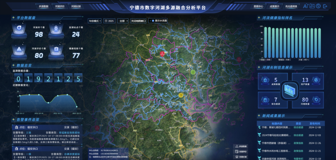 近日,我市“數字河湖多源融合分析系統”獲得2025年“數據要素×”大賽福建分賽綠色低碳賽道二等獎,并入選2025年寧德市“數據要素×”典型案例。該系統由寧德河湖研究院與寧德衛星大數據科技有限公司聯合研發,旨在以科技賦能助力我市幸福河湖建設。