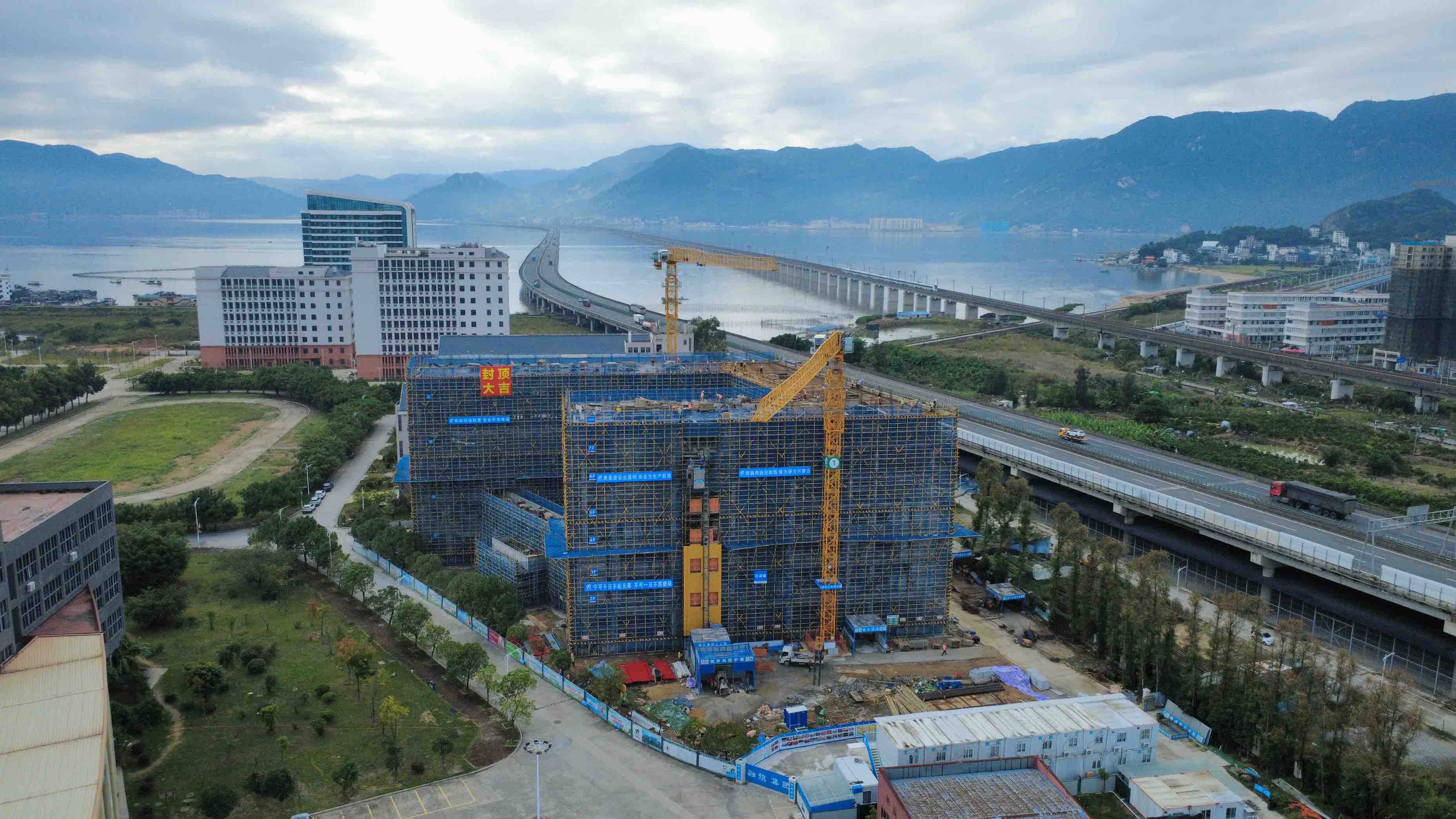 11月6日,記者在寧德師范學院看到,隨著屋面混凝土澆筑工作完成,該校新工科實訓大樓實現主體結構全面封頂,正式轉入砌體施工、二次結構施工及裝飾裝修階段。
