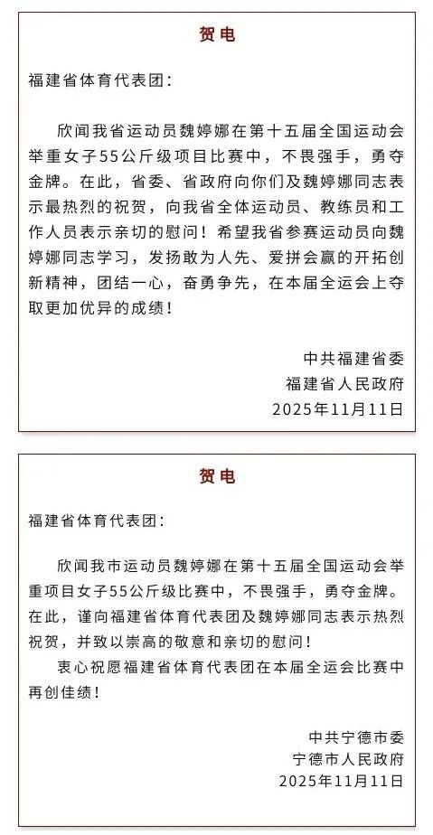 (原標題:全運會寧德首金!省市賀電來啦!)