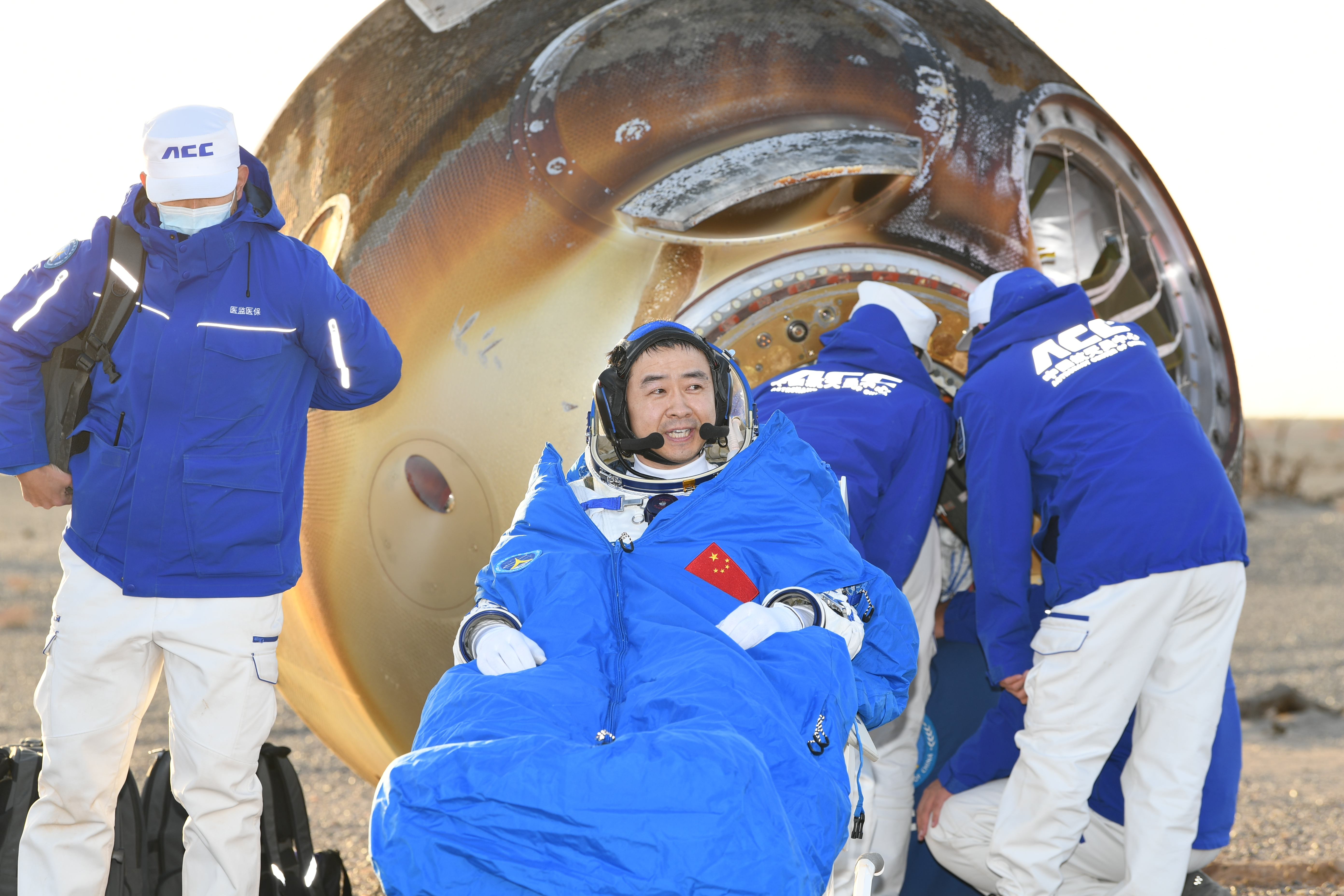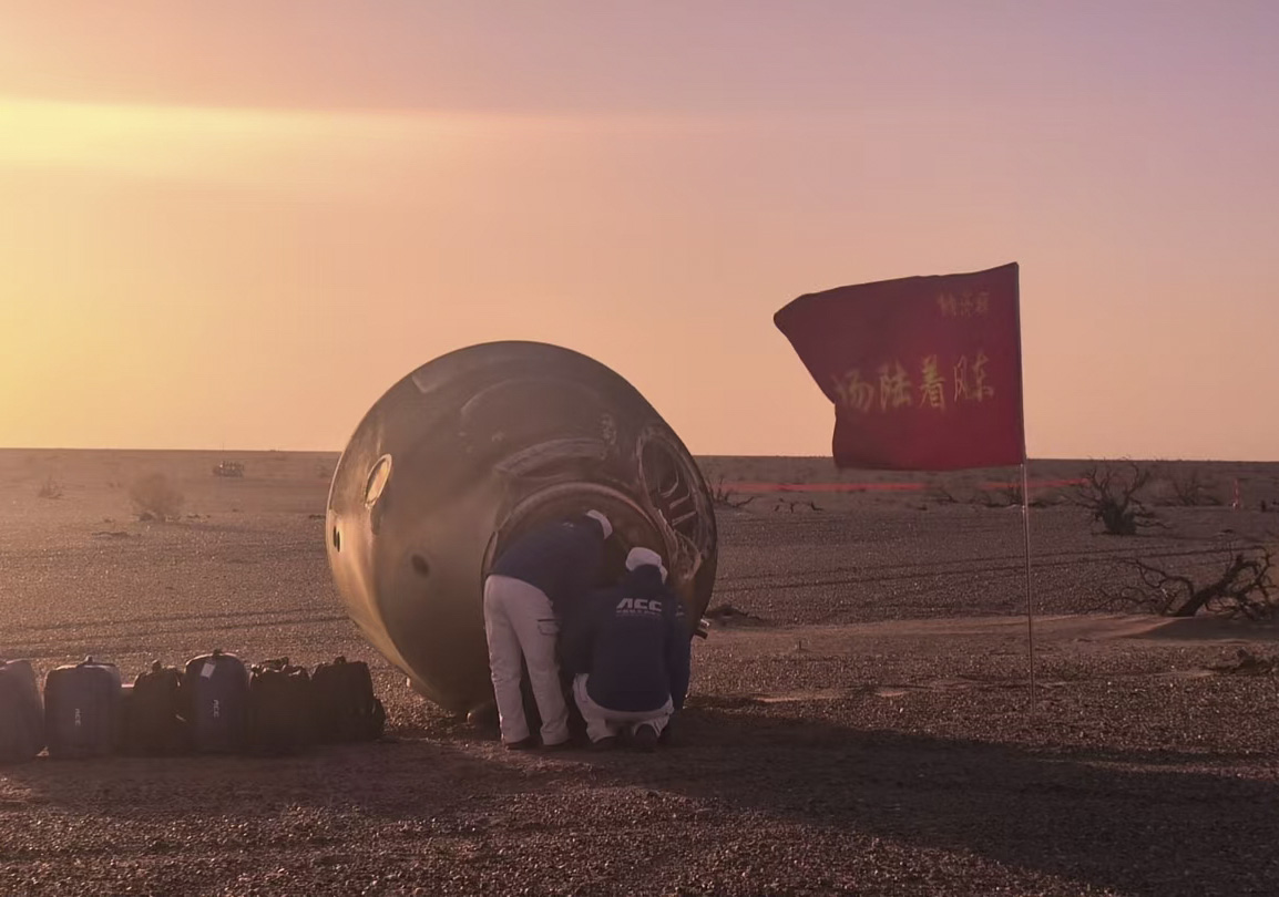 載著神舟二十號航天員乘組的神舟二十一號載人飛船返回艙在東風(fēng)著陸場成功著陸。