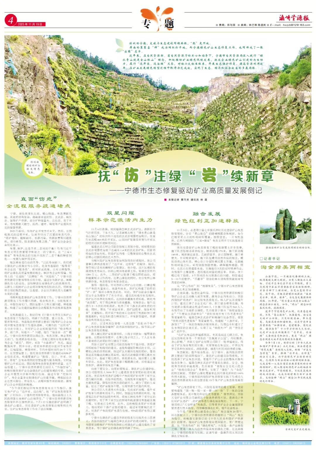 海峽資源報丨寧德:撫“傷 ”注綠 “巖”續新章