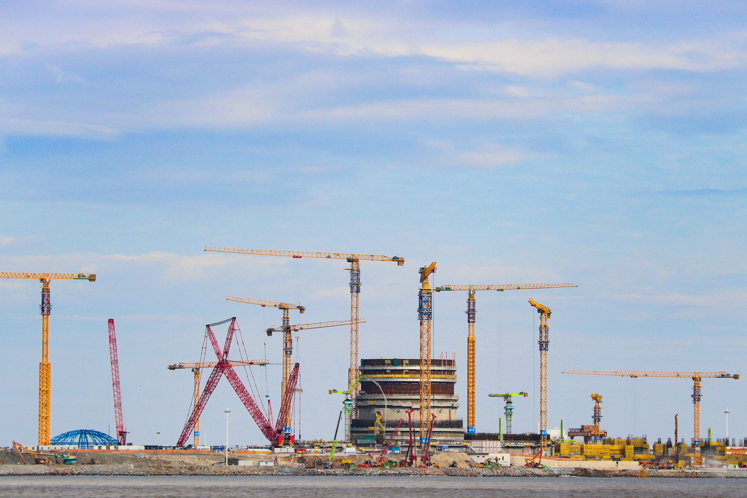近日,在位于福鼎市的寧德核電項目二期工程現場,塔吊林立,5、6號機組正穩步建設中,現場一片火熱。