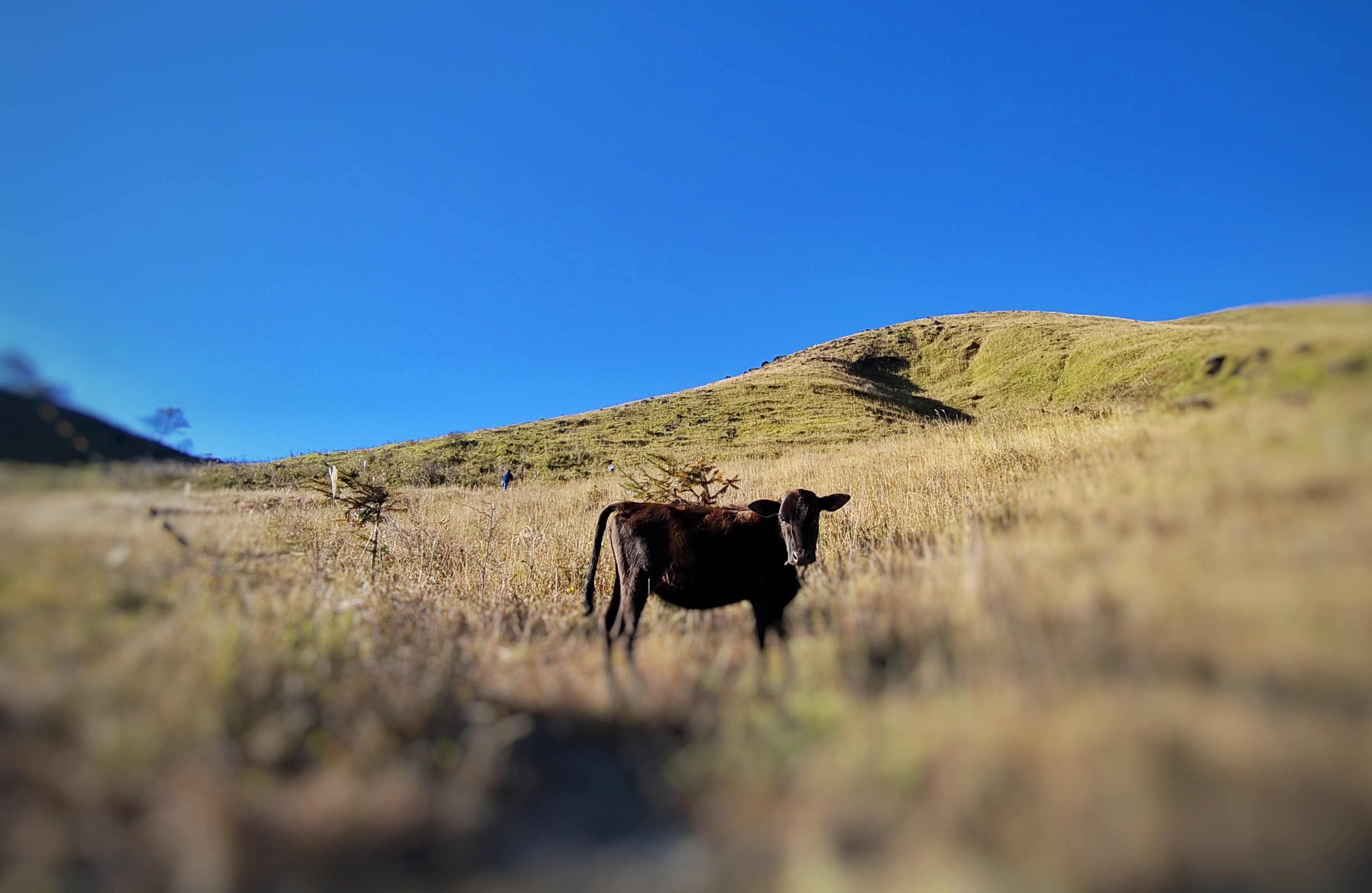 當初冬的微風輕拂過閩東大地,古田縣杉洋鎮白溪村的白溪草場便鋪展開一幅別樣的畫卷。澄澈如洗的藍天為幕,和煦暖陽傾瀉而下,綠黃相間的草葉被鍍上一層細碎金光,幾頭牛兒悠閑踱步、低頭啃食,每一寸土地都浸潤著自然靈秀,每一幀畫面都定格著鄉村的閑適。