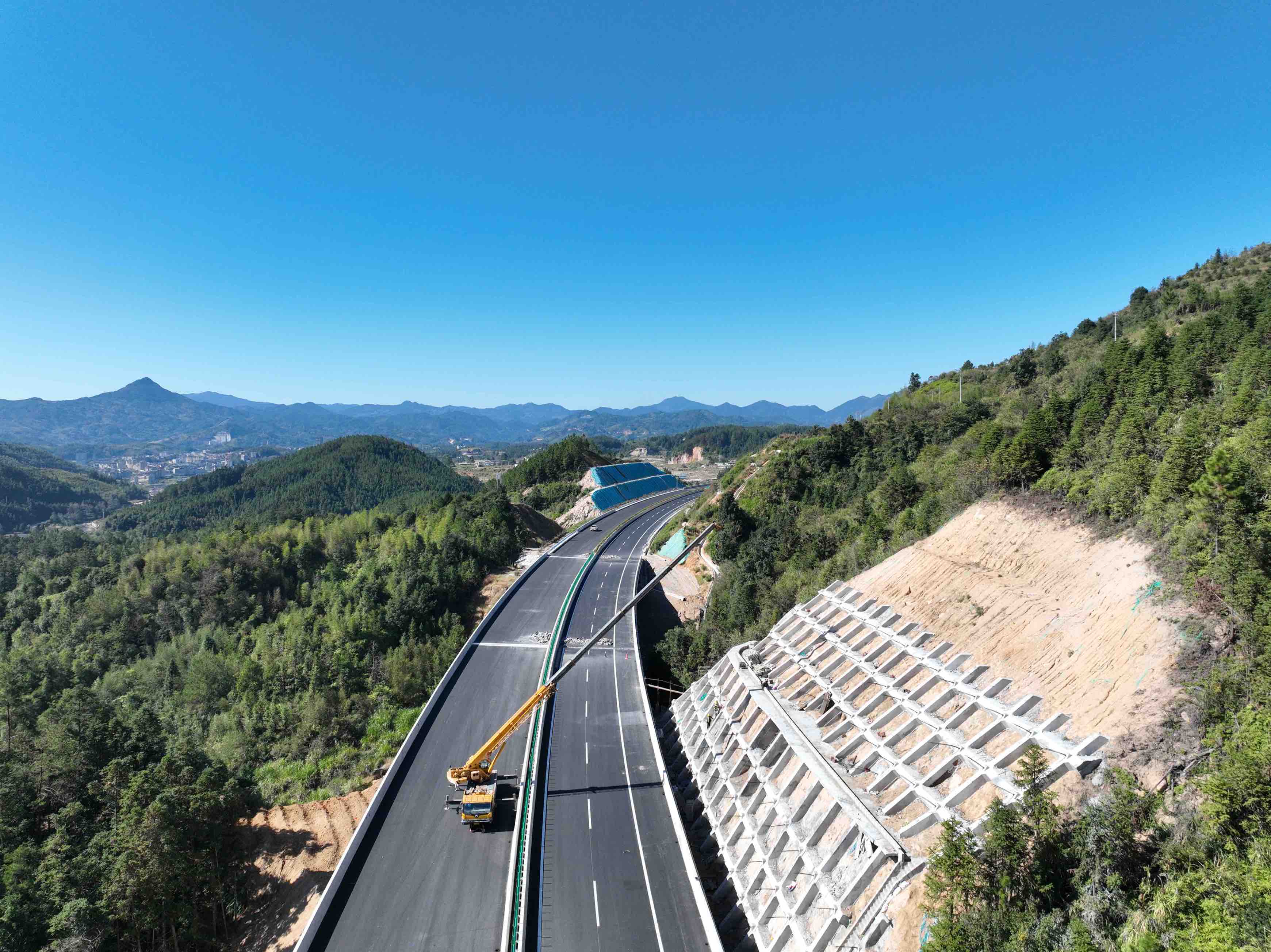 11月21日,記者在寧古高速全線控制性工程——后塘特大橋施工現場看到,各類施工機械轟鳴作響,目前,該控制性工程已進入橋梁伸縮縫施工收尾階段。