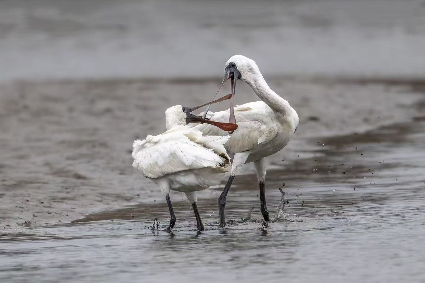 黑臉琵鷺和東方白鸛現身寧德霞浦