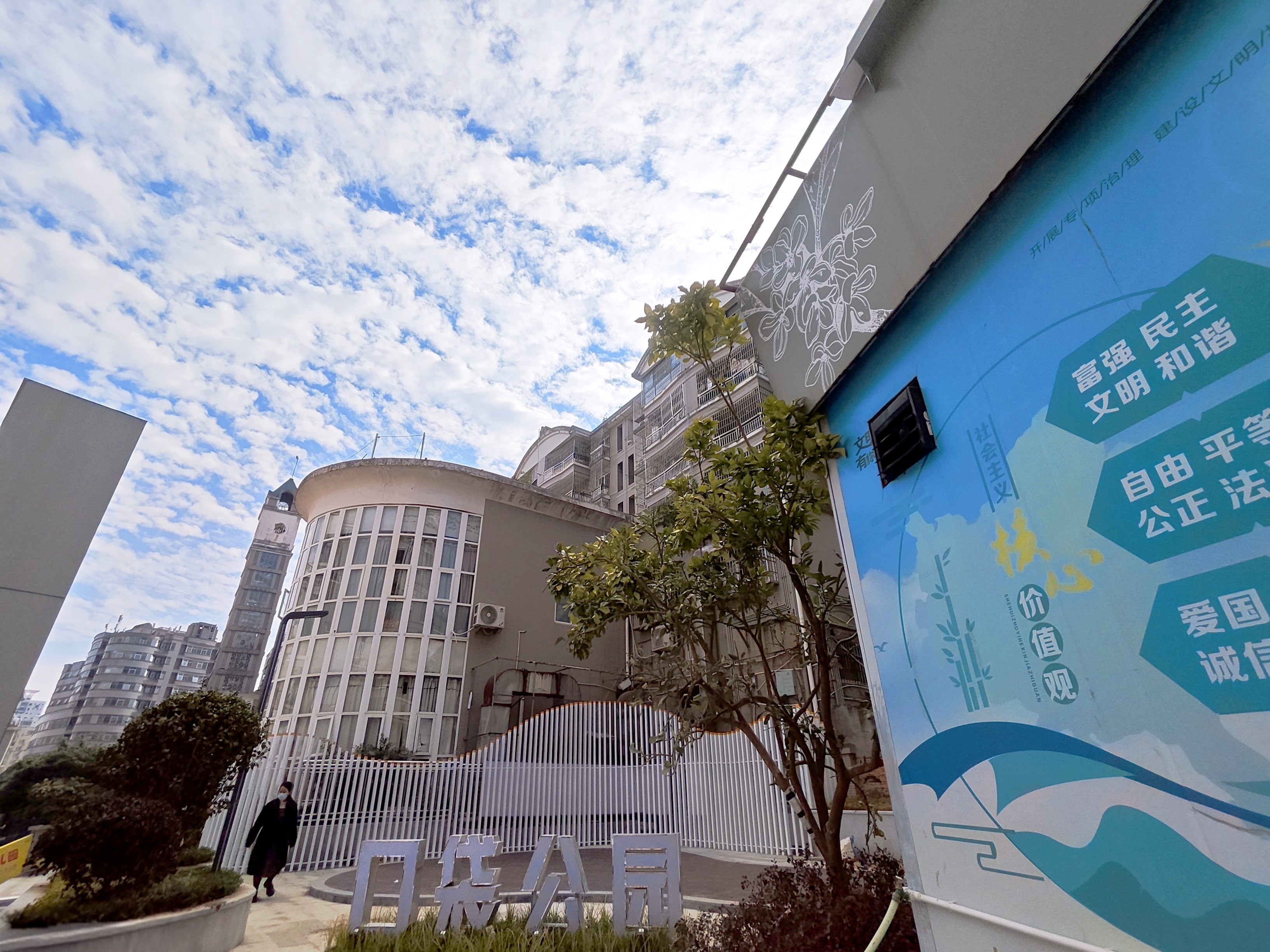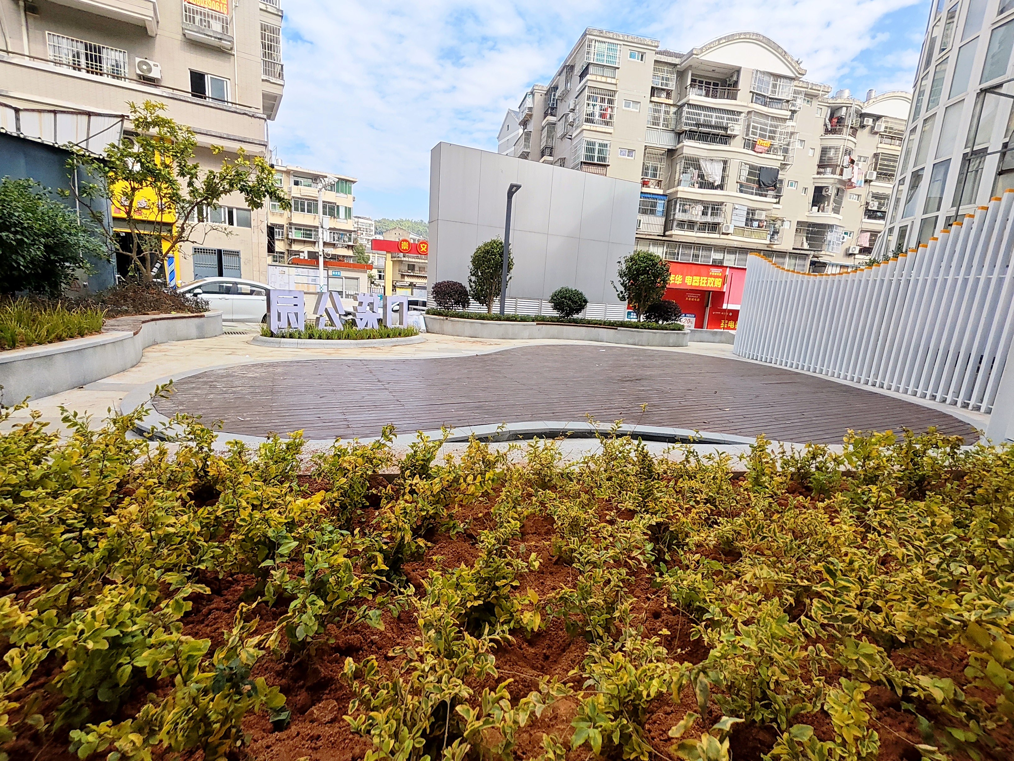 這片占地455平方米的街角空間,如今已褪去往日雜亂模樣,成為兼具實用與美感的公共休憩地。異形花池座椅、休閑木平臺錯落分布,特色裝飾墻點綴其間,綠意與設計感相融,既為市民提供了舒適的停留休憩點位,也為步行街增添了一抹雅致生機。