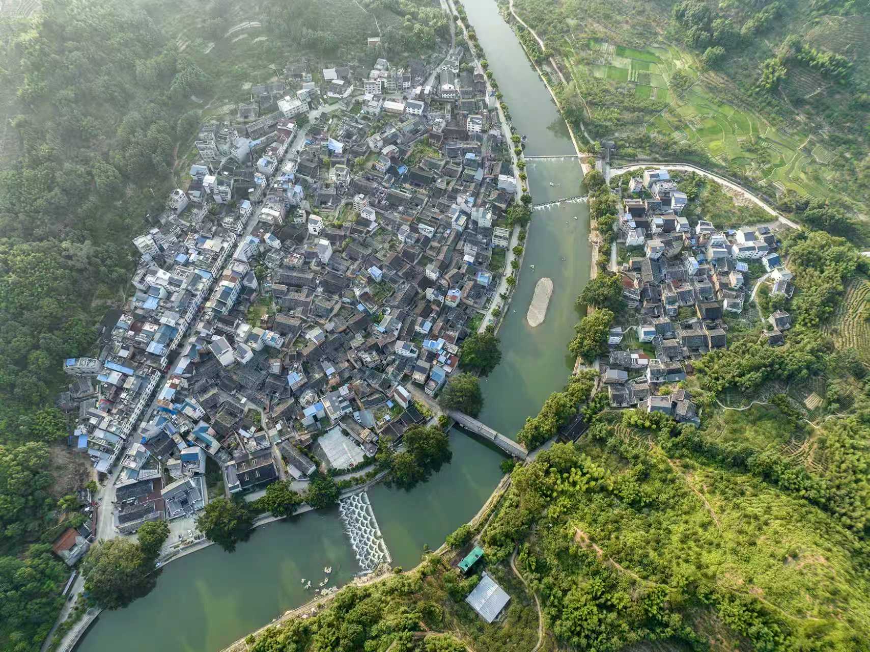 向導說,數百年前,鄭、陳、郭等九大姓氏先祖遷徙武陵溪畔,各栽一株榕樹為記,以寄托“人口不分多少,宗族無分大小”的平等和睦愿望。如今樹木早已亭亭如蓋,胸徑數圍,枝丫交錯相擁。從最初的九姓繁衍到如今的30余個姓氏,和睦共處的傳統從未改變。我的目光在榕樹的枝干根莖間留連,那一個個凸起的節瘤,一道道凹陷的溝壑,都是千百年風雨鐫刻的印記和歲月滄桑的層層積淀,深藏著各個家族攜手開荒、共建家園的傳奇,也記載著村莊的子孫們開枝散葉、繁衍不息的繁帙記錄。
