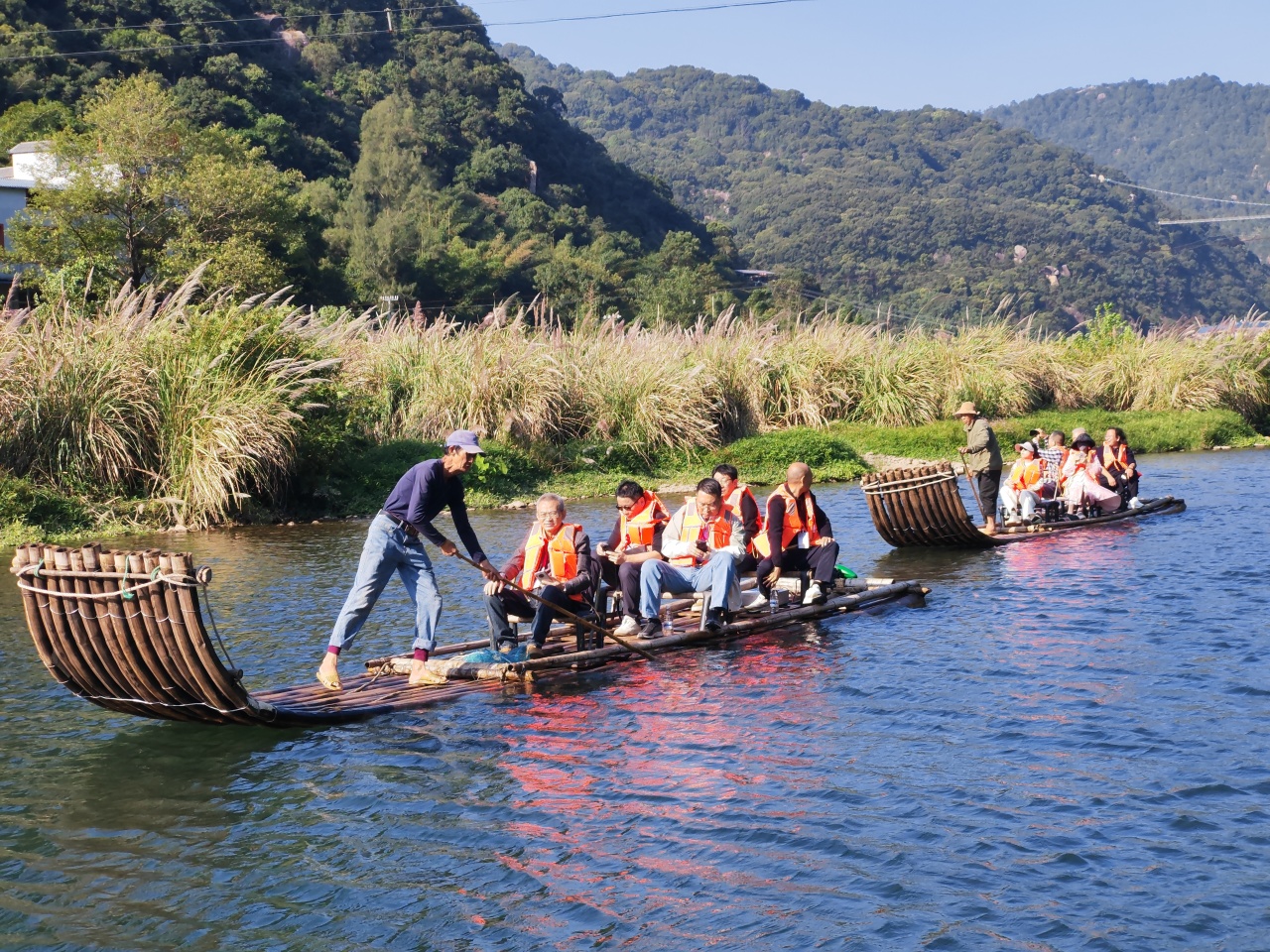 詩人乘著竹筏泛波溪上 謝玲雄 攝