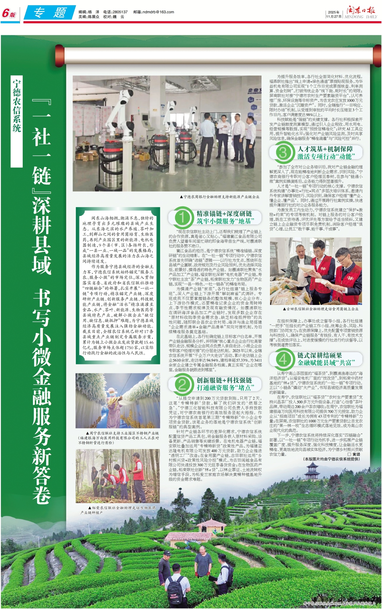 從壽寧高山茶園里的“福茶貸”,到霞浦漁港邊的“海洋經濟貸”;從福安電機廠里的“技改貸”,到柘榮中藥材基地的“林e貸”,寧德農信系統的“一社一鏈”專項行動,正以“小鏈條”撬動“大產業”,書寫縣域經濟高質量發展的新篇章。
